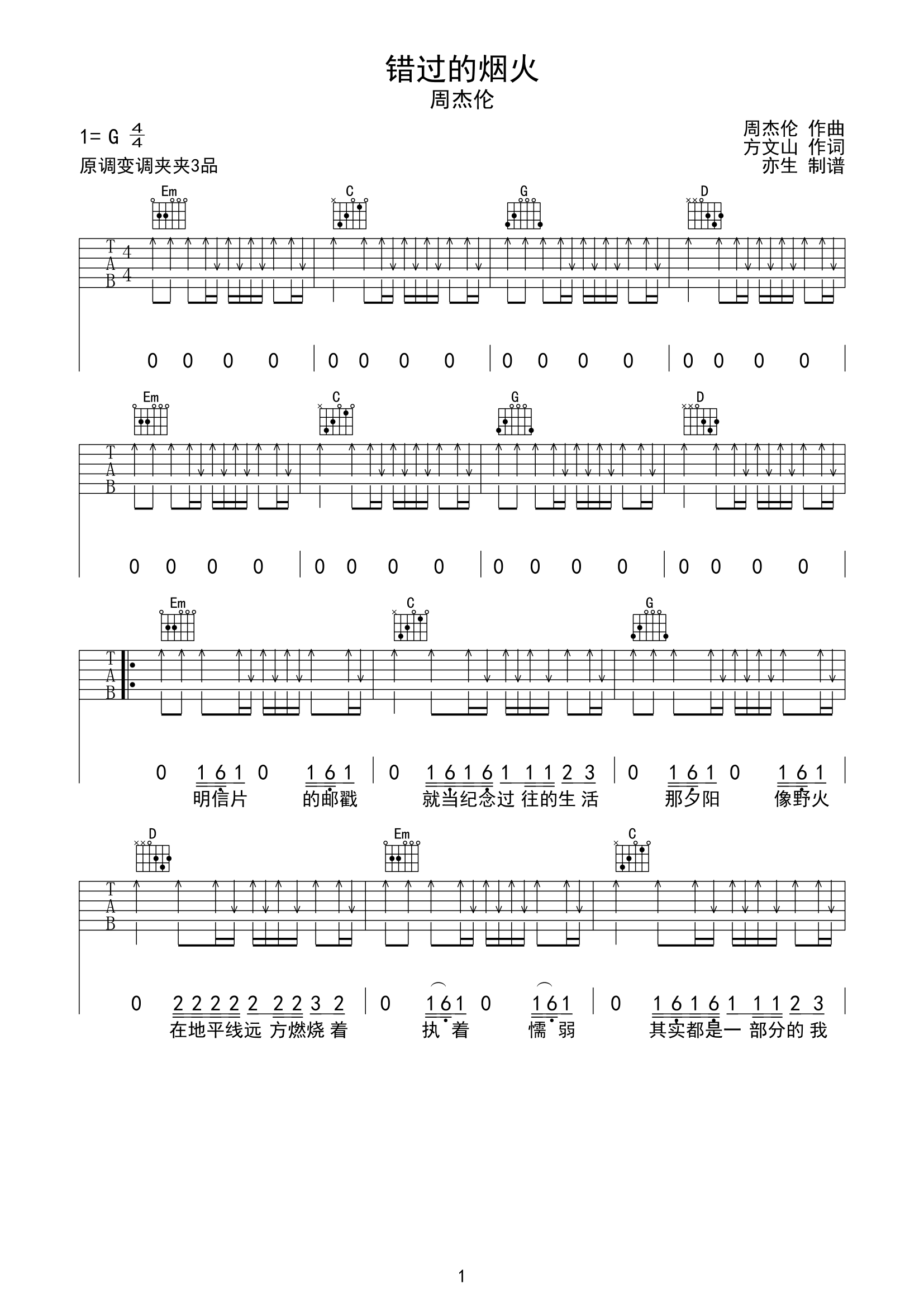 错过的烟火吉他谱 - 周杰伦 - G调吉他弹唱谱