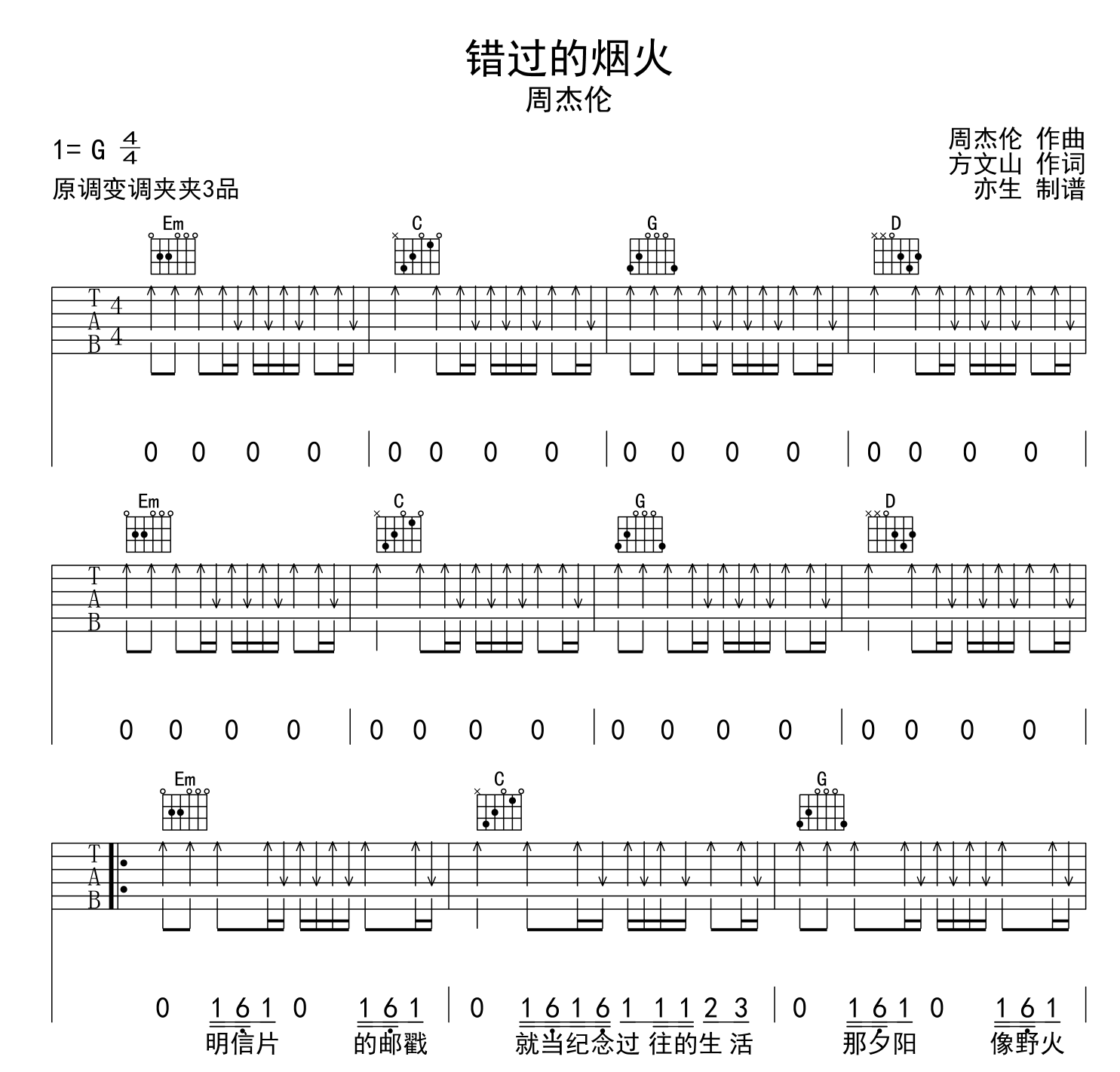 错过的烟火吉他谱 - 周杰伦 - G调吉他弹唱谱 - 原版