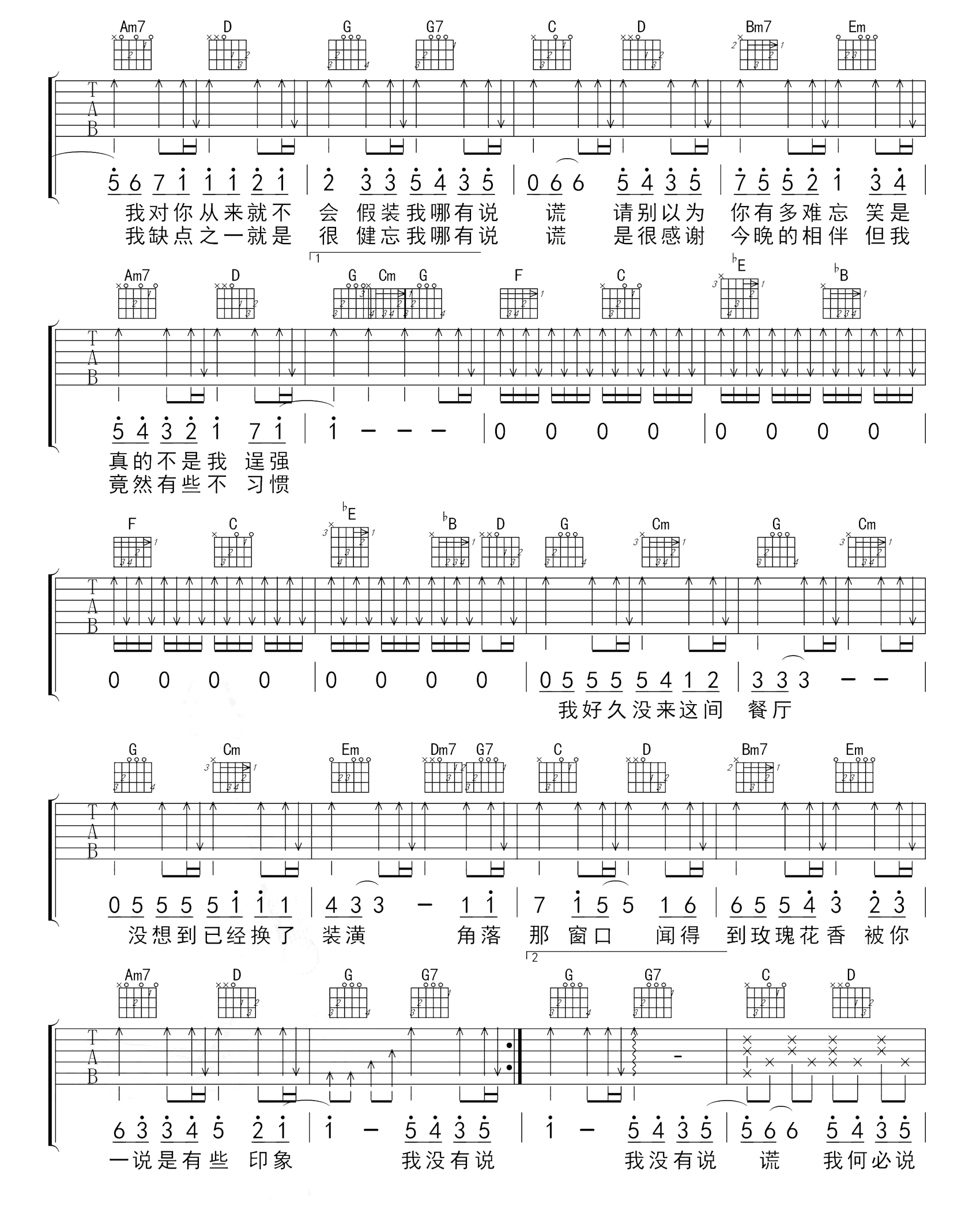 当前位置:琴谱网>吉他弹唱>说谎