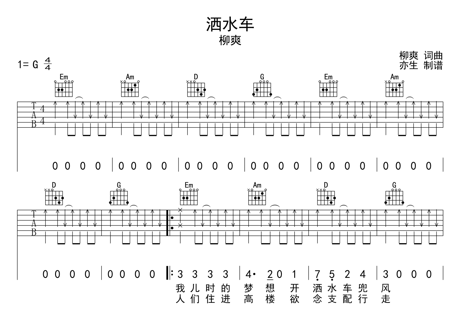 洒水车吉他谱 - 柳爽 - G调吉他弹唱谱 - 原版