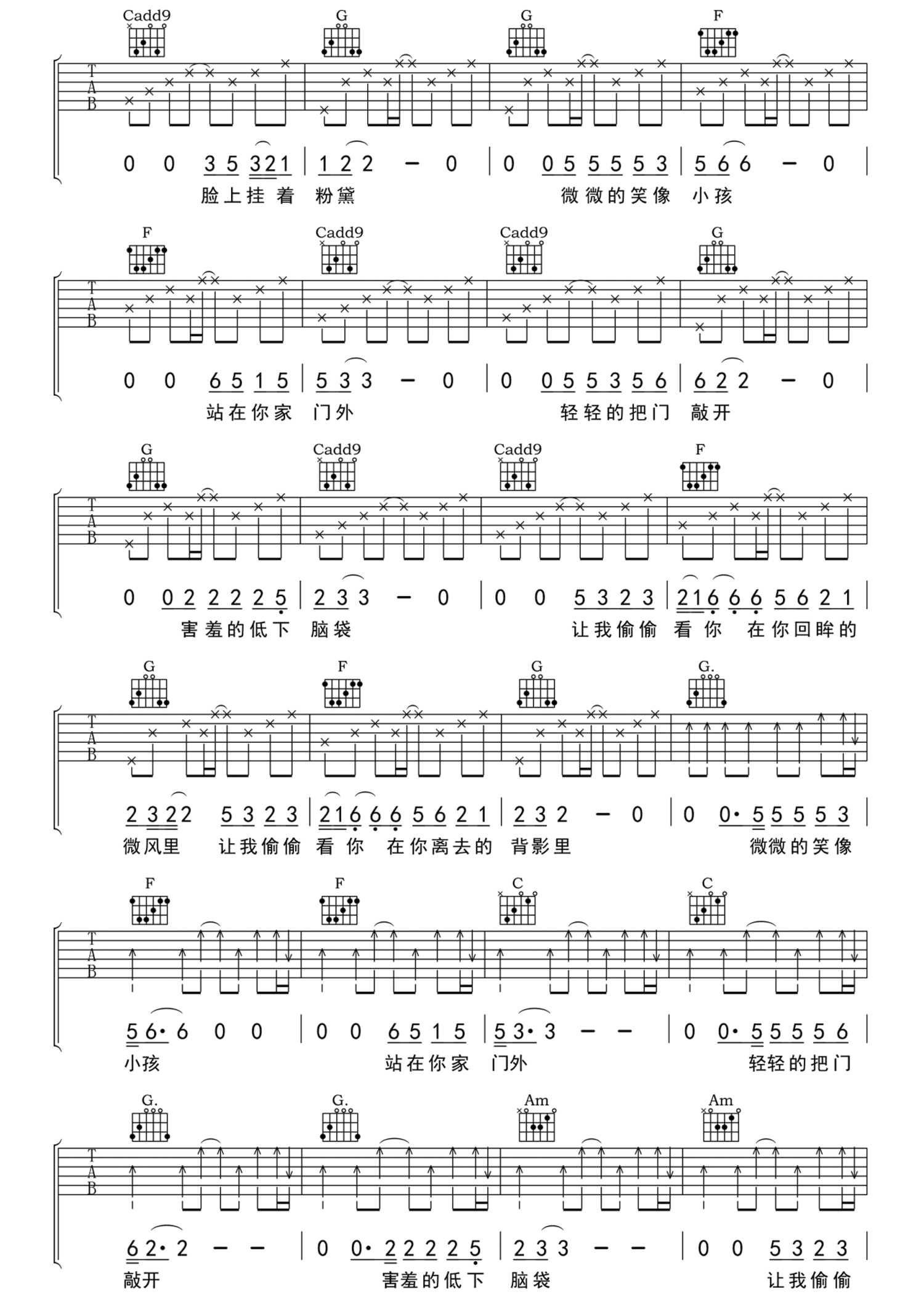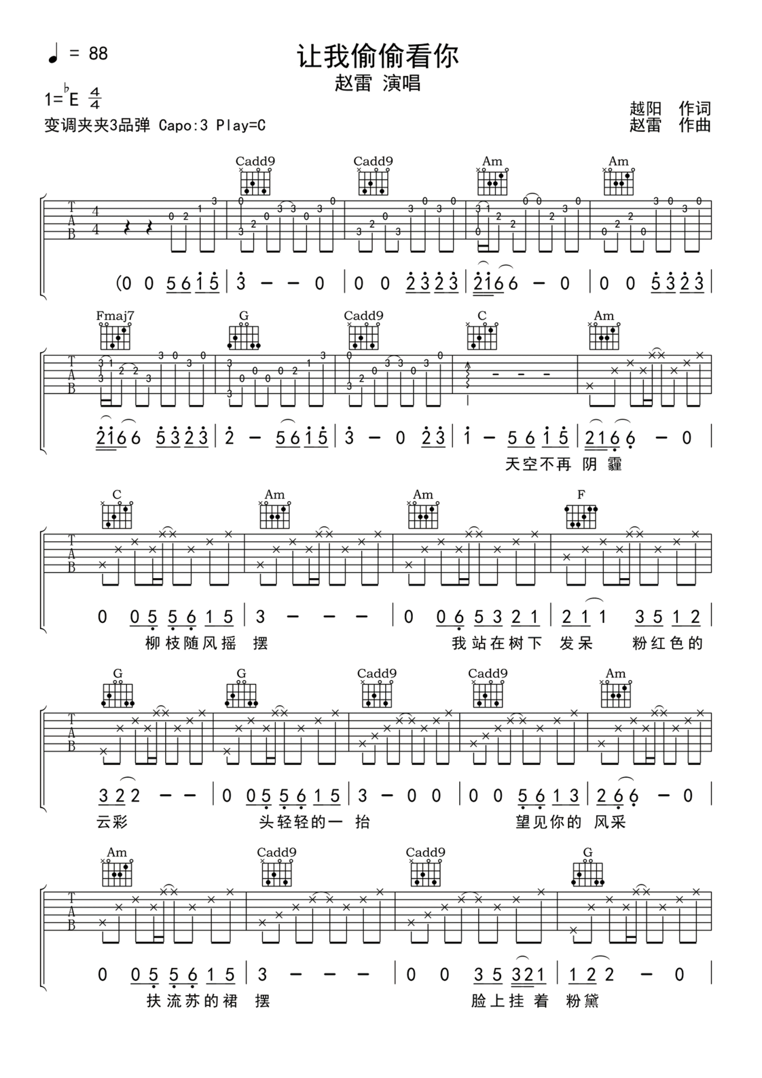 曲谱介绍: 赵雷《让我偷偷看你》吉他谱 小叶歌版本
