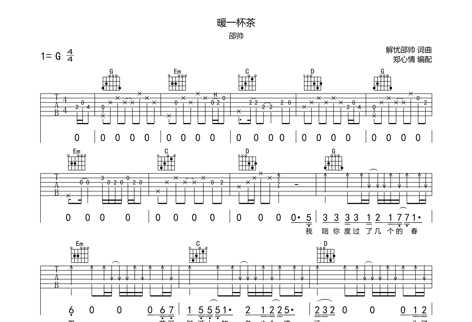 暖一杯茶吉他谱 - 邵帅 - G调吉他弹唱谱 - 原版