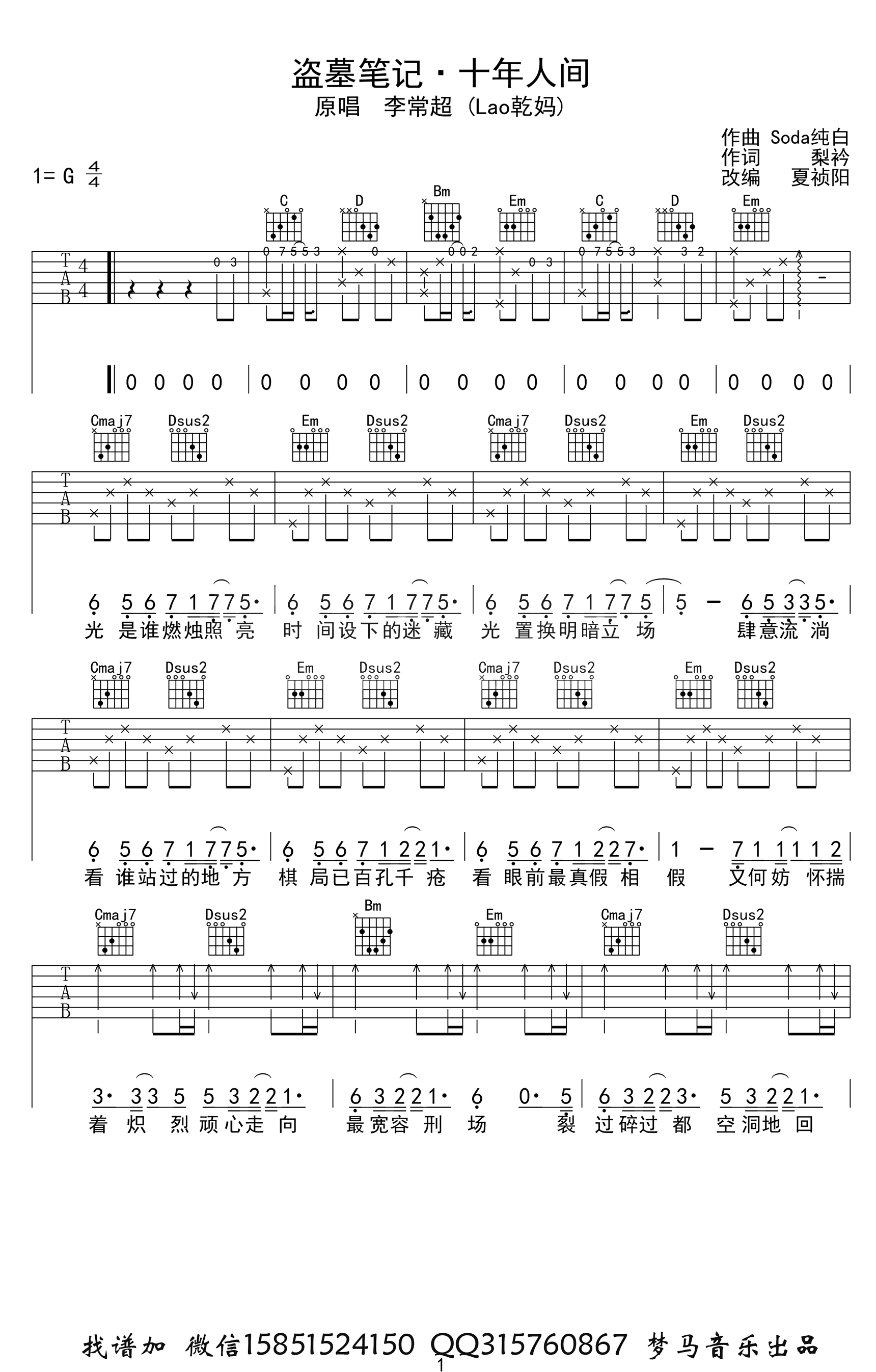 盗墓笔记十年人间吉他谱 - 李常超 - G调吉他弹唱谱