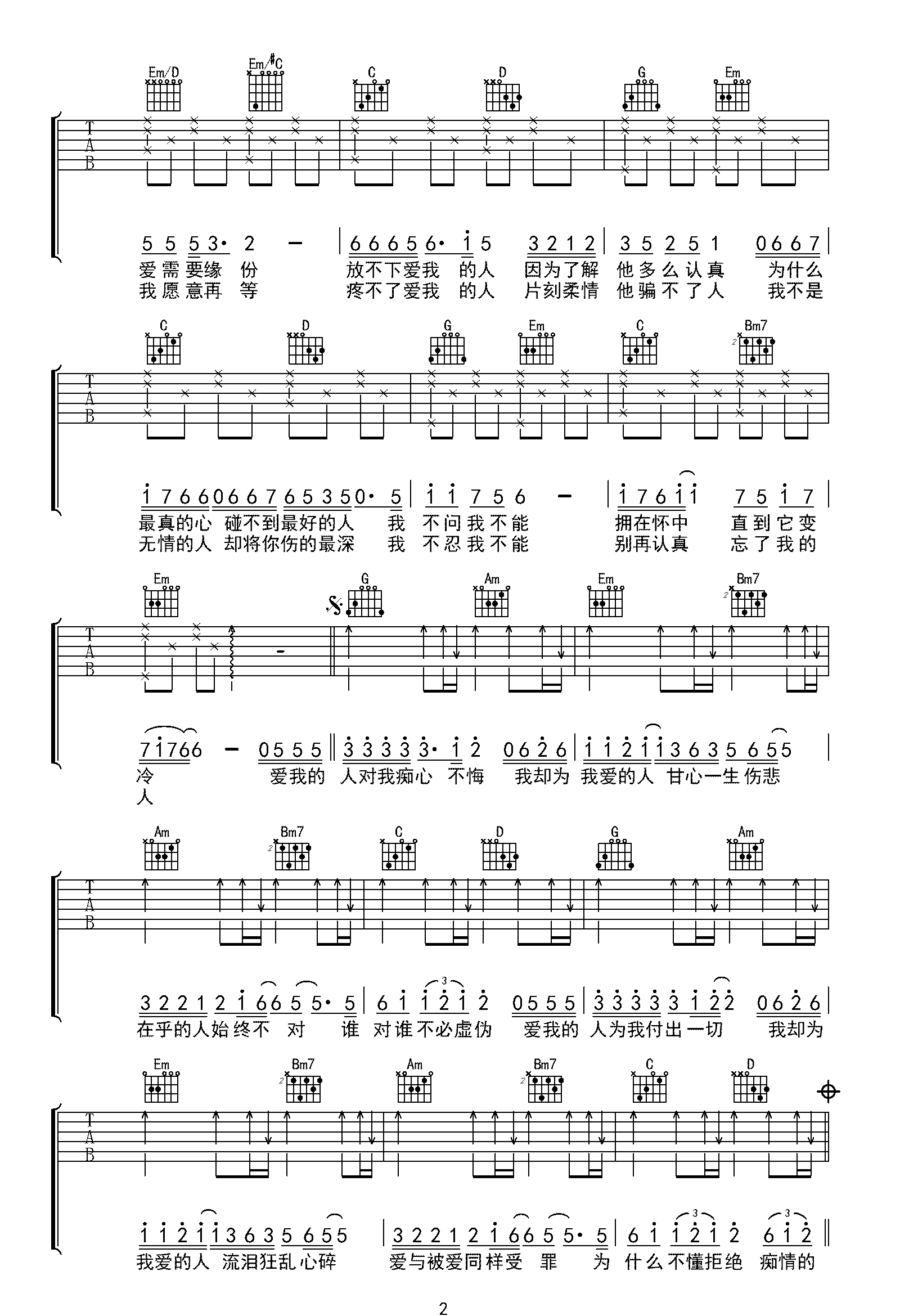 当前位置:琴谱网>吉他弹唱>爱我的人和我爱的人