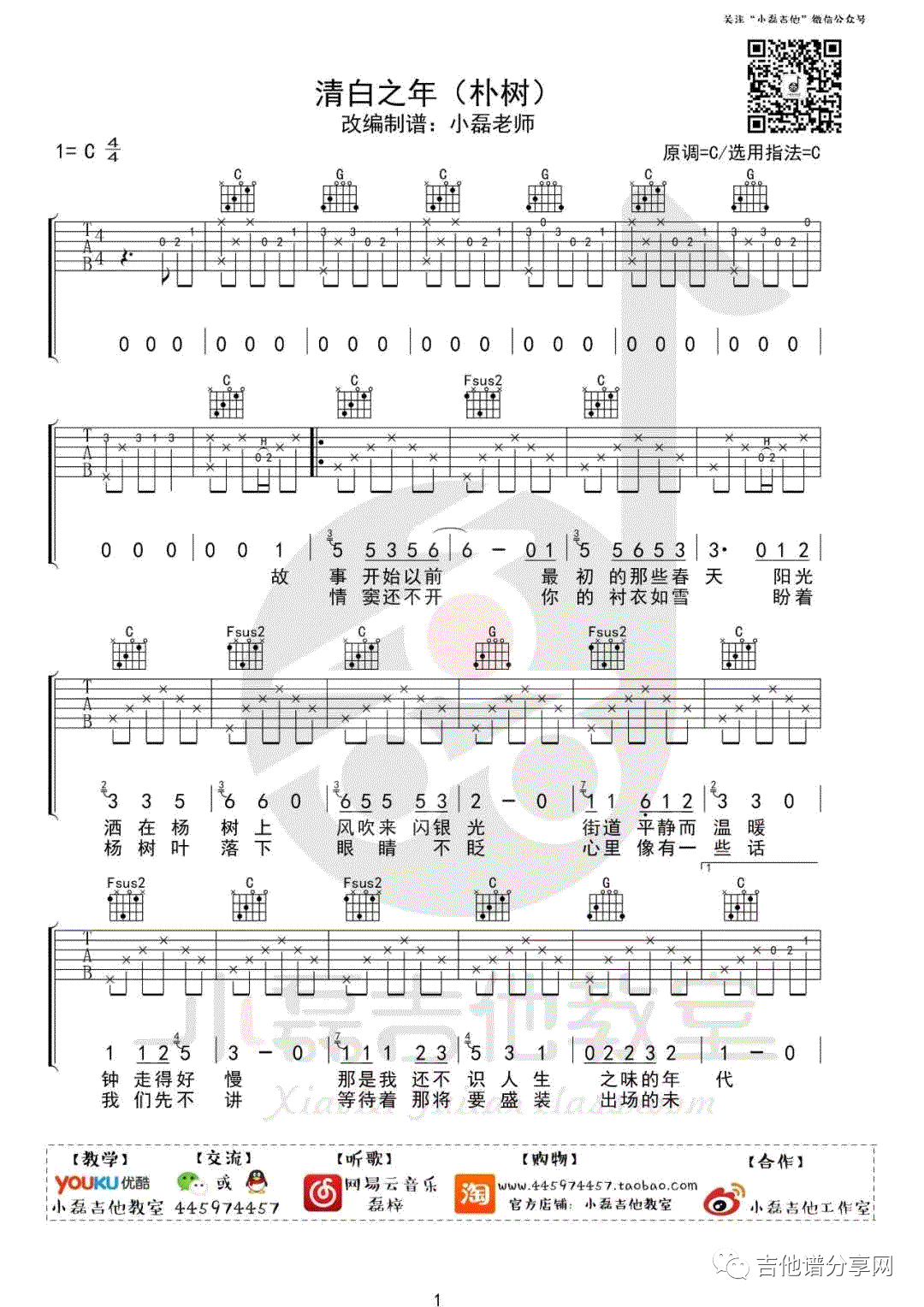 清白之年吉他谱 - 弹唱 - C调吉他弹唱谱