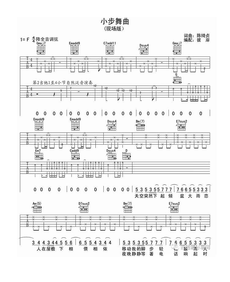 小步舞曲 陈绮贞 F调吉他谱 - 小步舞曲 - F调吉他弹唱谱