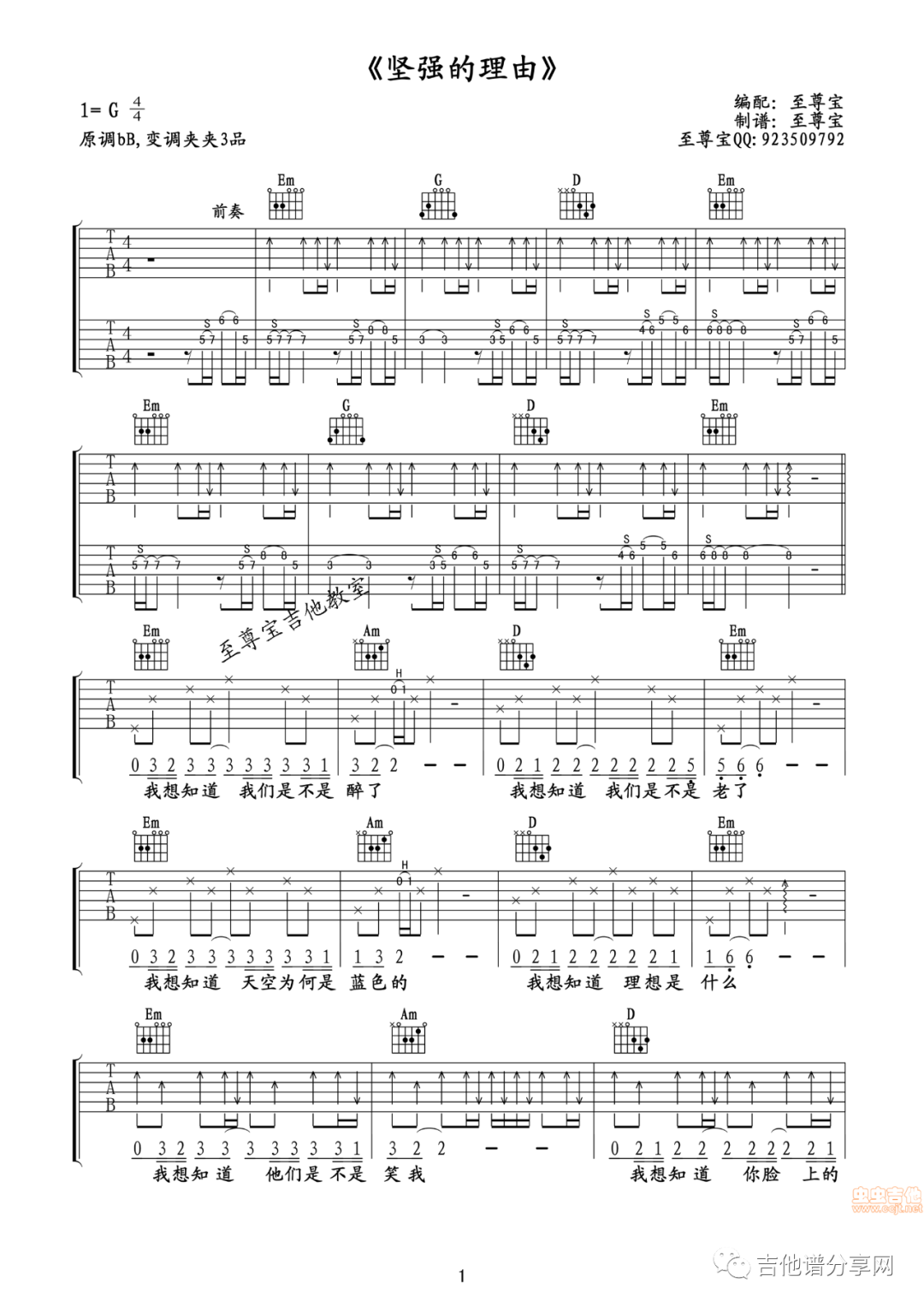 坚强的理由吉他谱 - 弹唱 - G调吉他弹唱谱