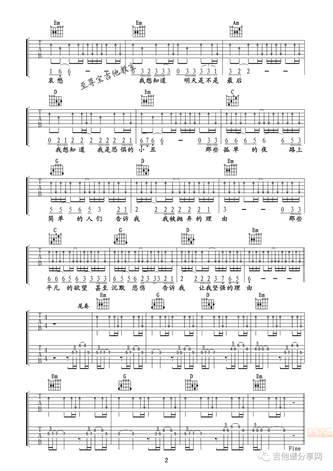 当前位置:琴谱网>吉他弹唱>坚强的理由