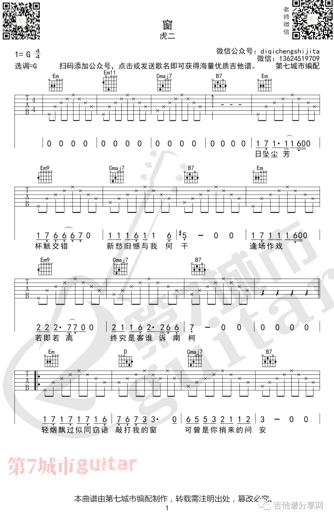 窗吉他谱 - 弹唱 - G调吉他弹唱谱