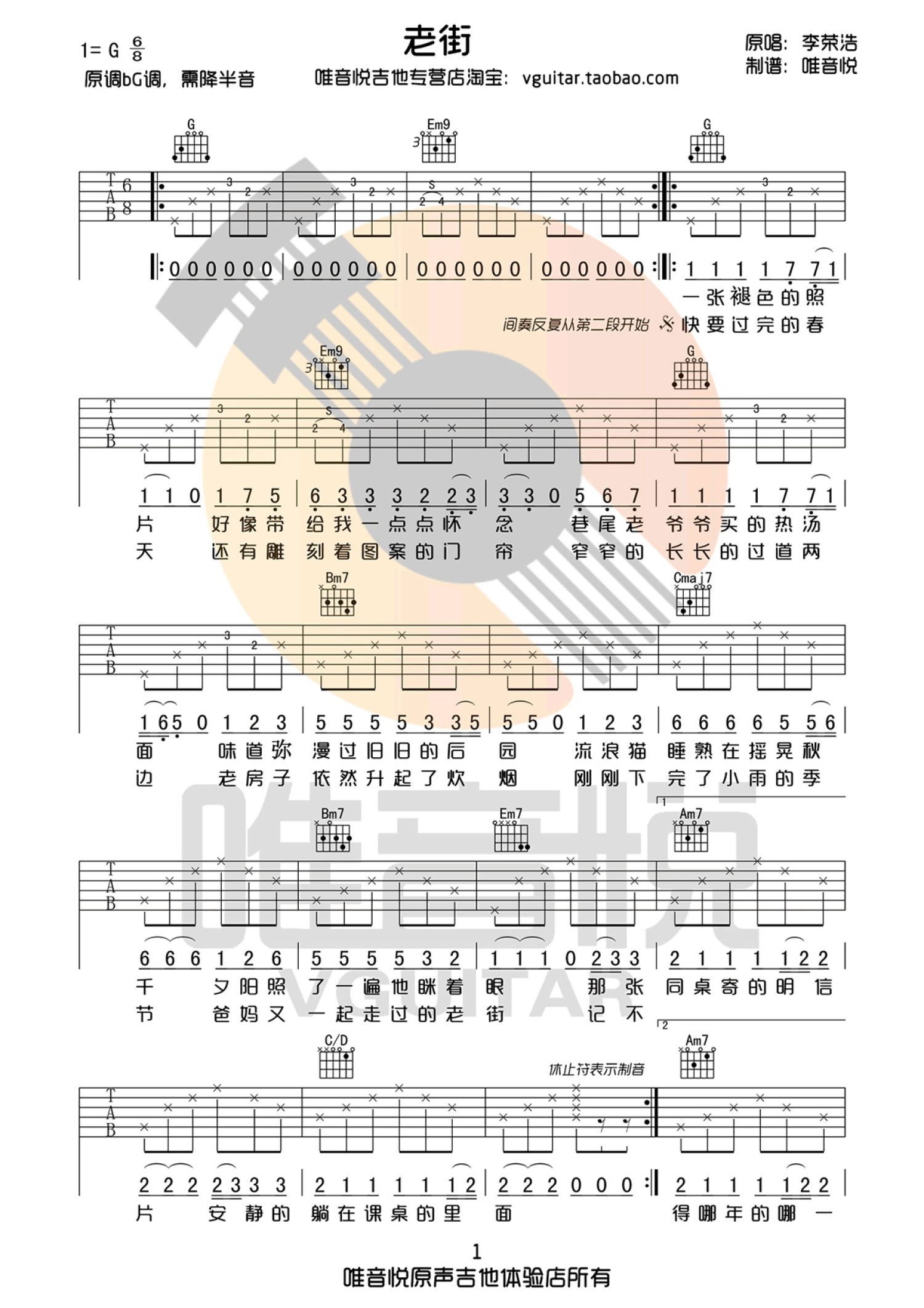 老街吉他谱 - 李荣浩 - G调吉他弹唱谱