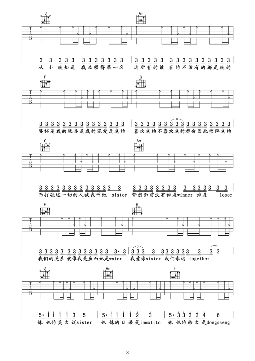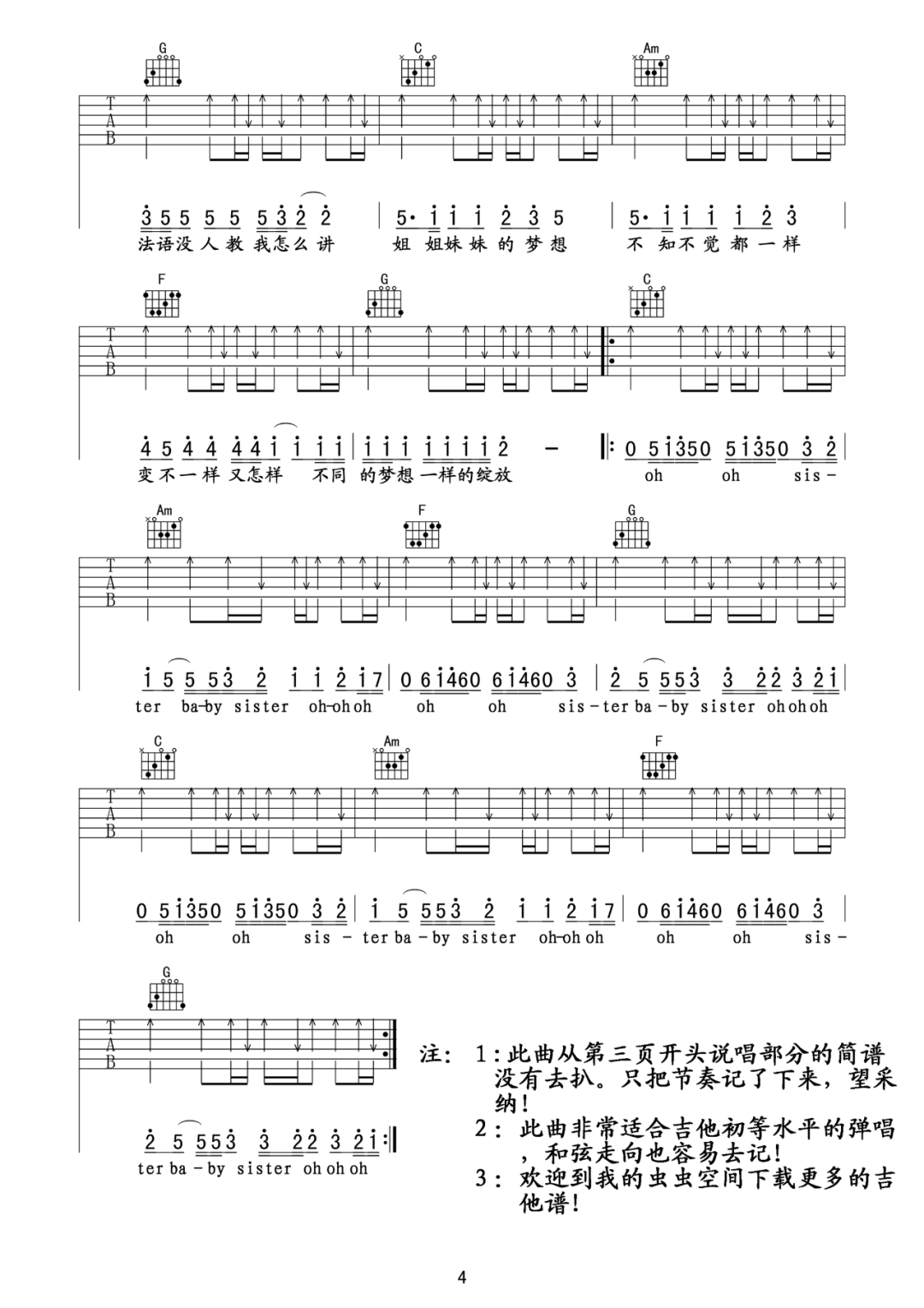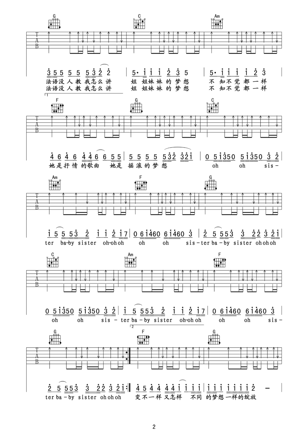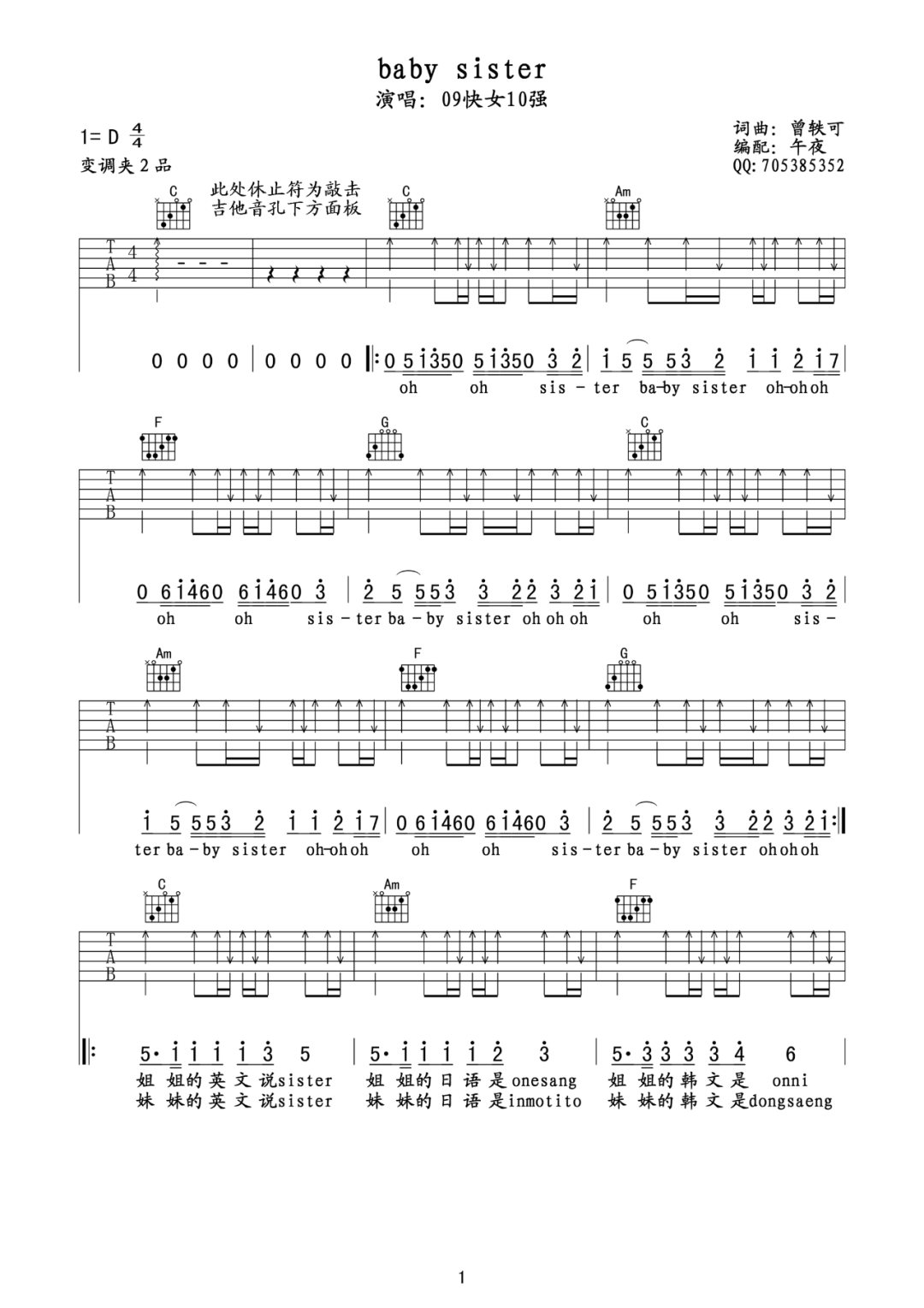 baby sister吉他谱 - 曾轶可 - D调吉他弹唱谱