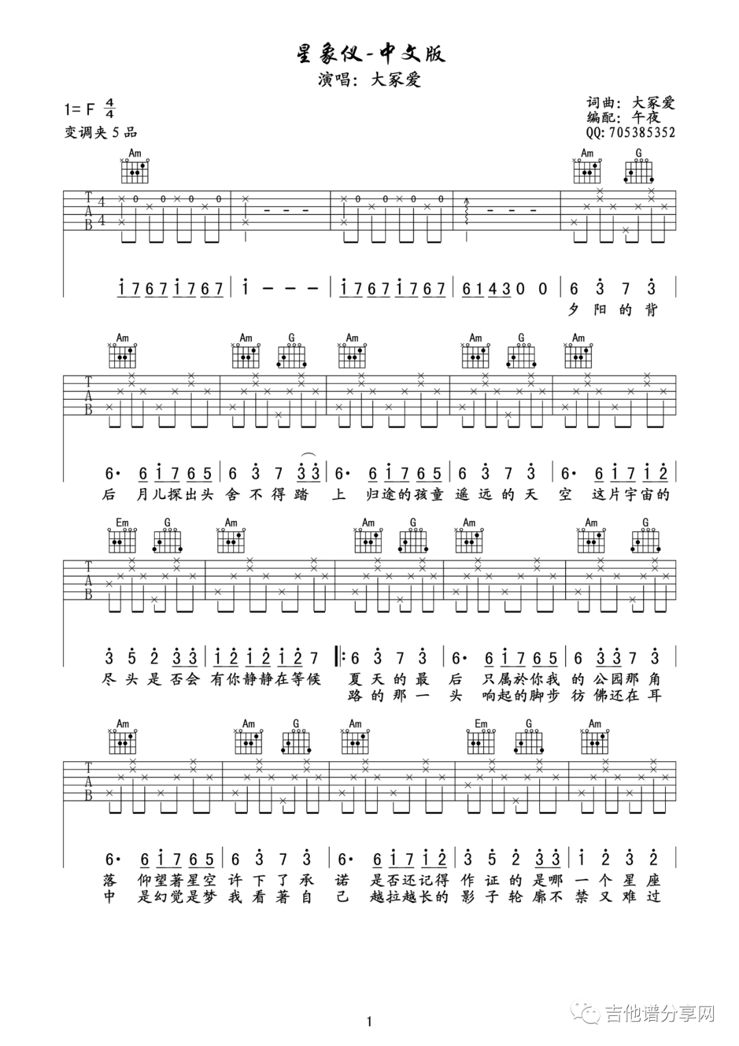 星象仪吉他谱 - 大冢爱 - F调吉他弹唱谱