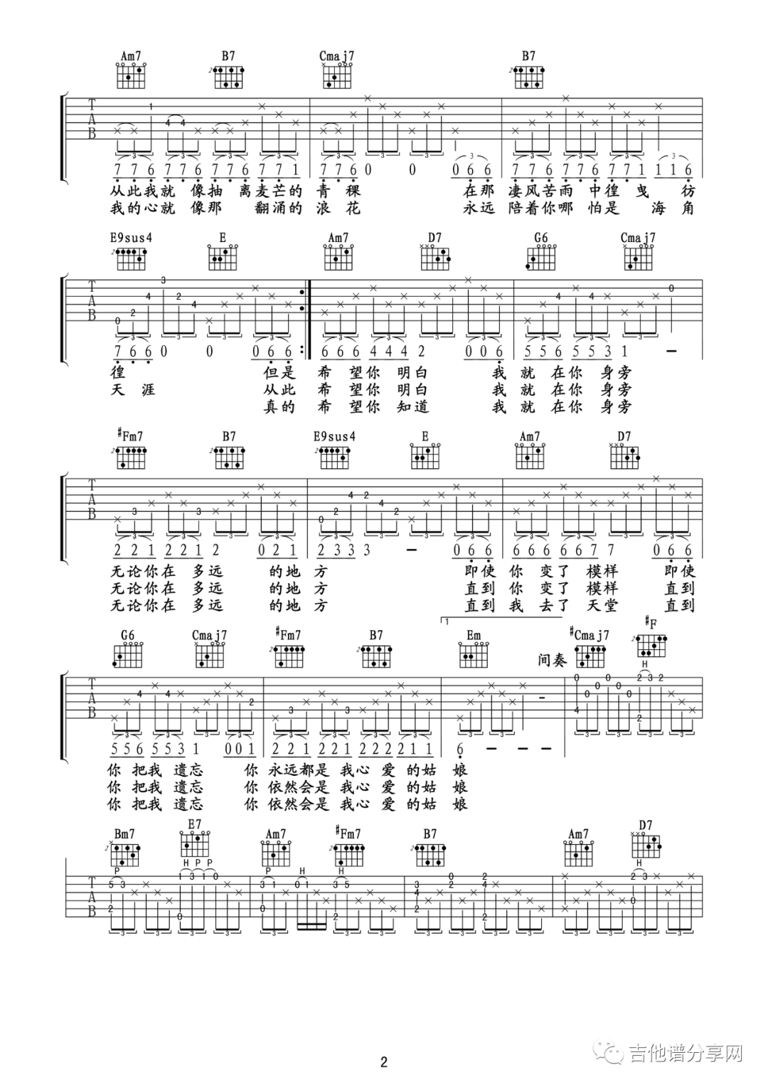 当前位置:琴谱网>吉他弹唱>你是我心爱的姑娘
