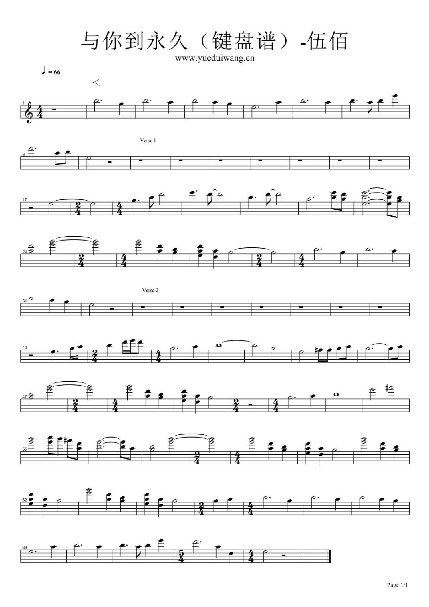 与你到永久钢琴谱 - 伍佰 - 键盘谱