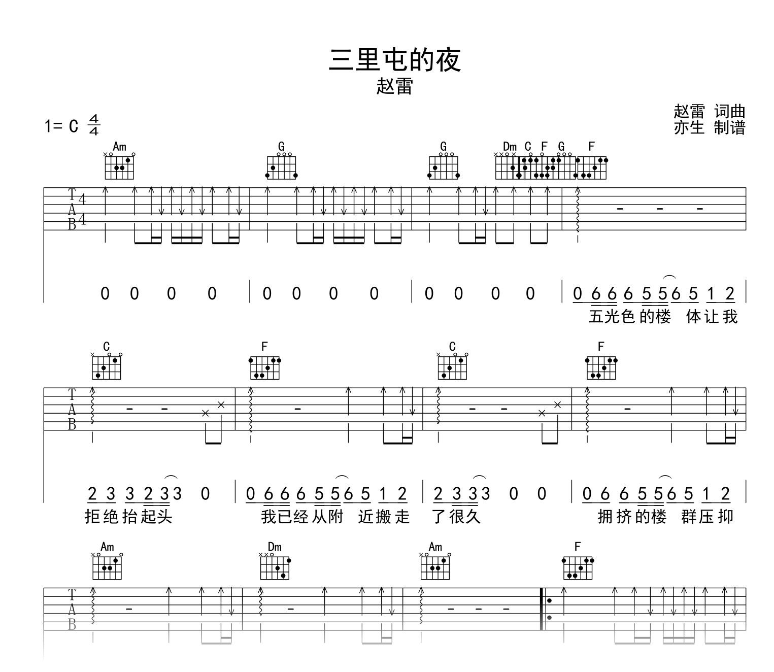 三里屯的夜吉他谱 - 赵雷 - C调吉他弹唱谱