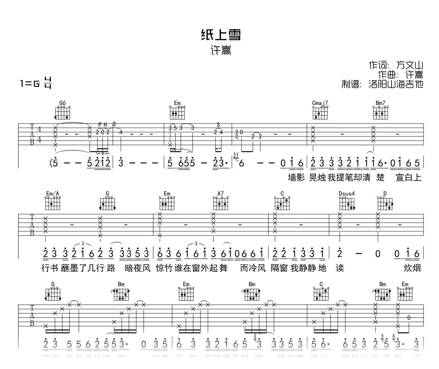纸上雪吉他谱 - 许嵩 - G调吉他弹唱谱