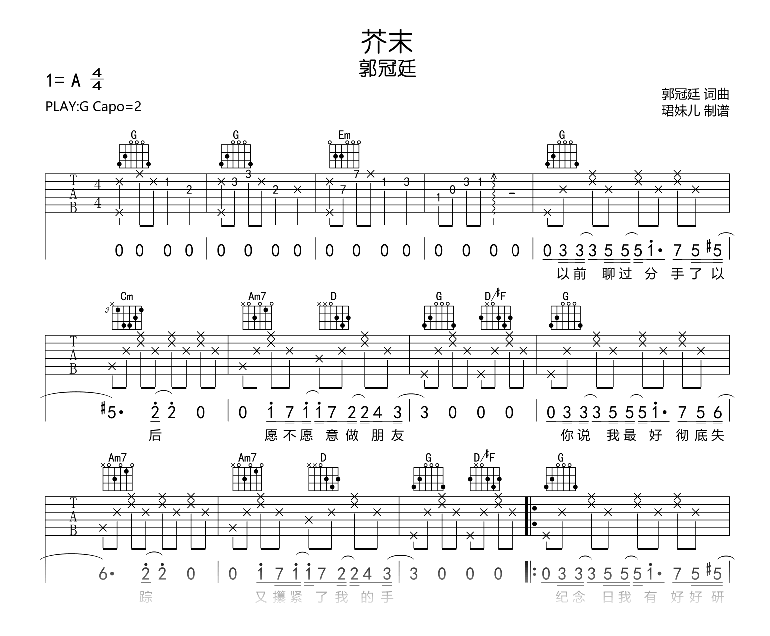 芥末吉他谱 - 郭冠廷 - G调吉他弹唱谱