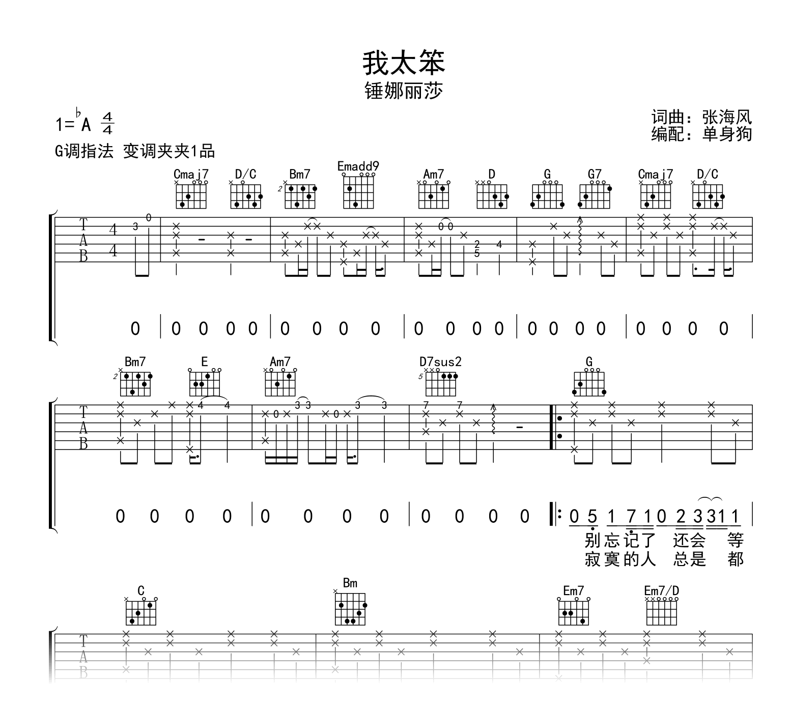 我太笨吉他谱 - 锤娜丽莎 - G调吉他弹唱谱