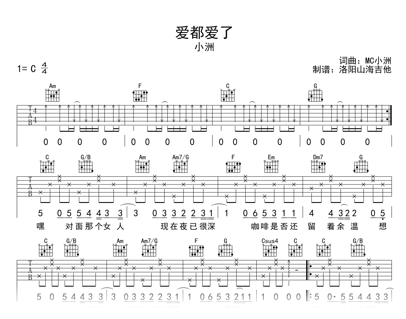 爱都爱了吉他谱 - 小洲 - C调吉他弹唱谱