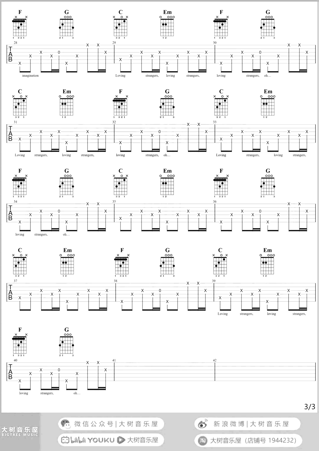 当前位置:琴谱网>吉他弹唱>Loving Strangers