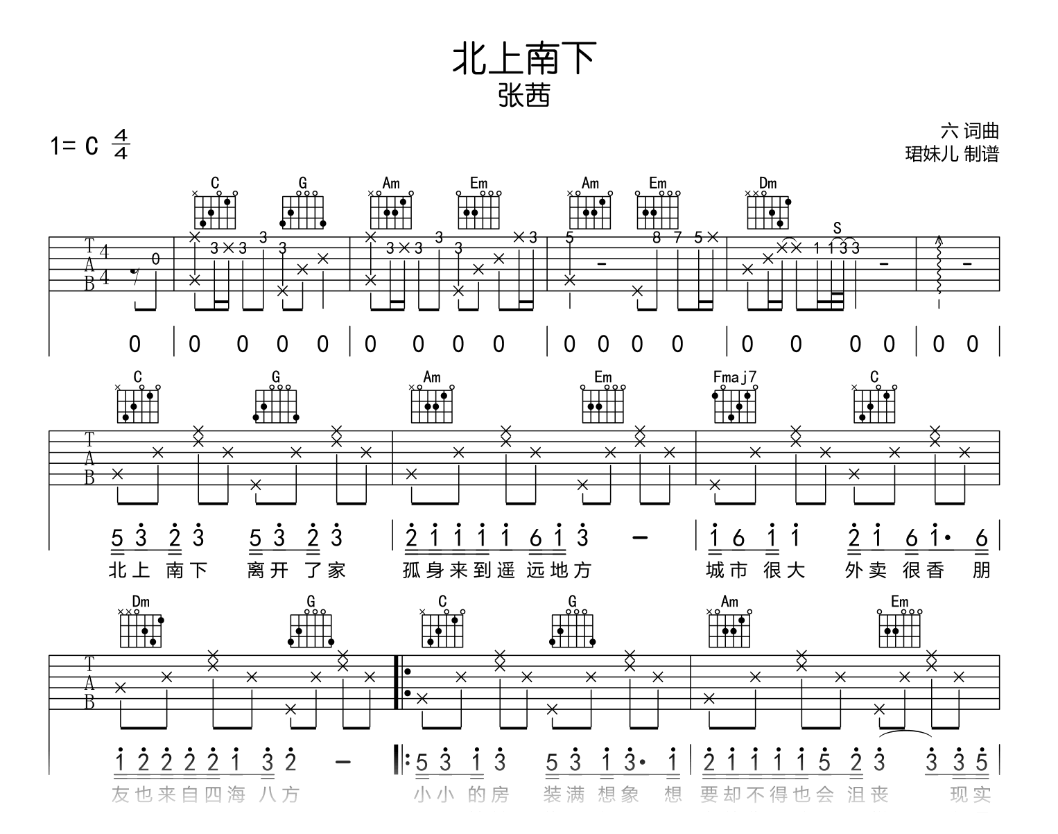 北上南下吉他谱 - 张茜 - C调吉他弹唱谱