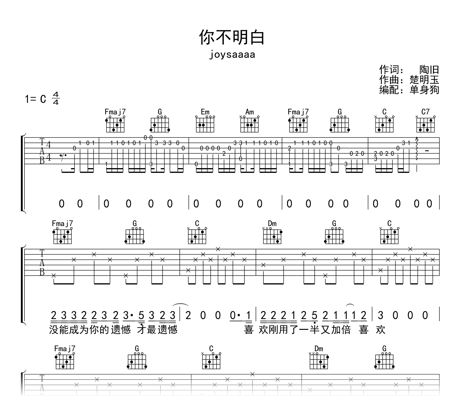 你不明白吉他谱 - Joysaaaa - C调吉他弹唱谱