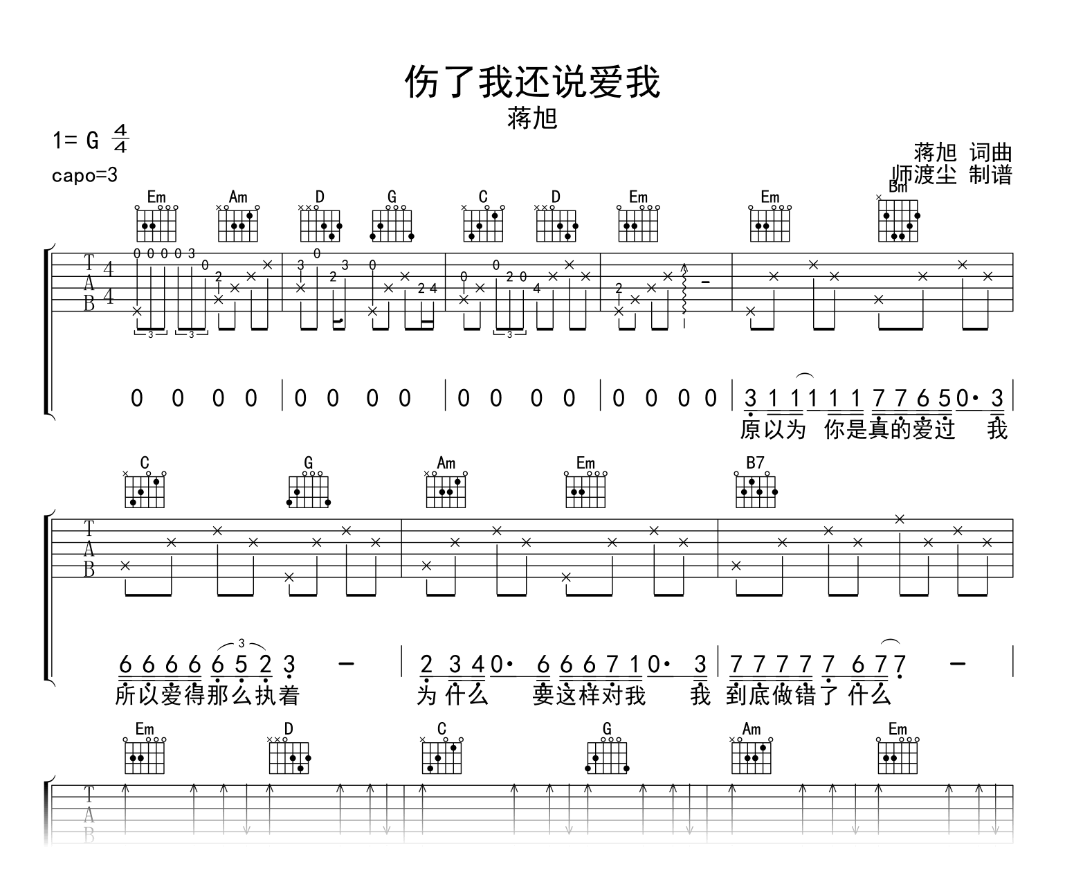 伤了我还说爱我吉他谱 - 蒋旭 - G调吉他弹唱谱