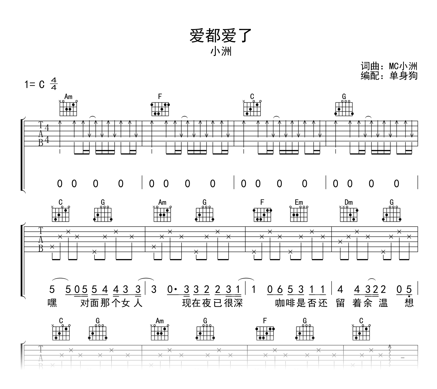 爱都爱了吉他谱 - 小洲 - C调吉他弹唱谱