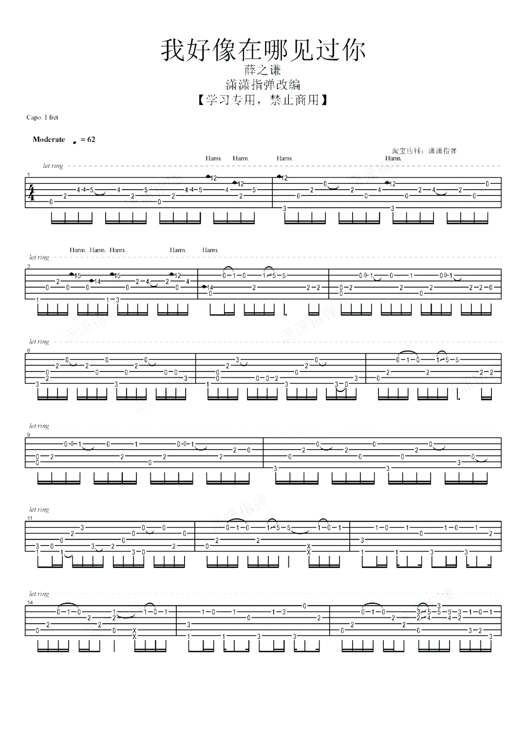 我好像在哪见过你吉他谱 - 薛之谦 - 吉他独奏谱