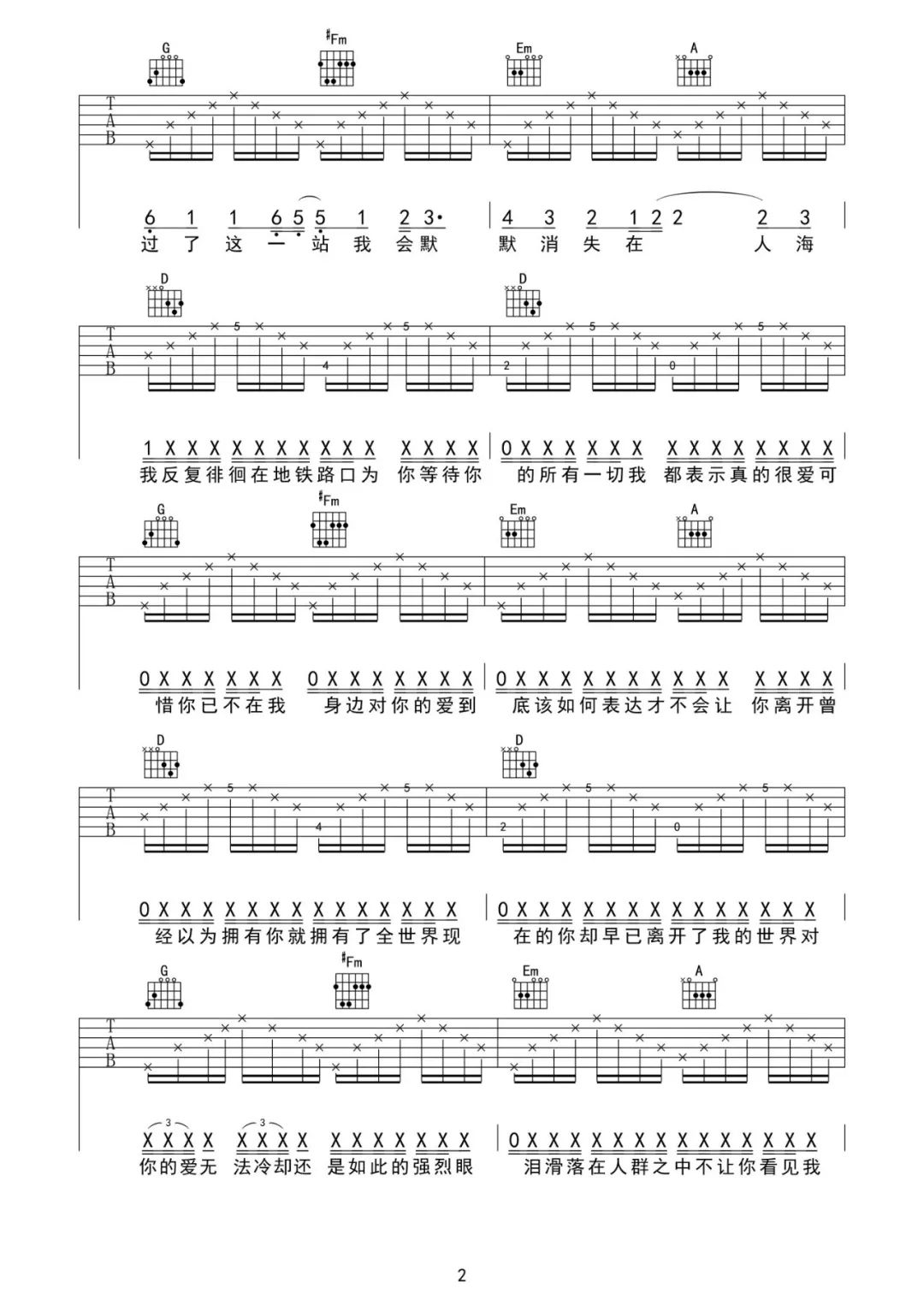 当前位置:琴谱网>吉他弹唱>地铁等待