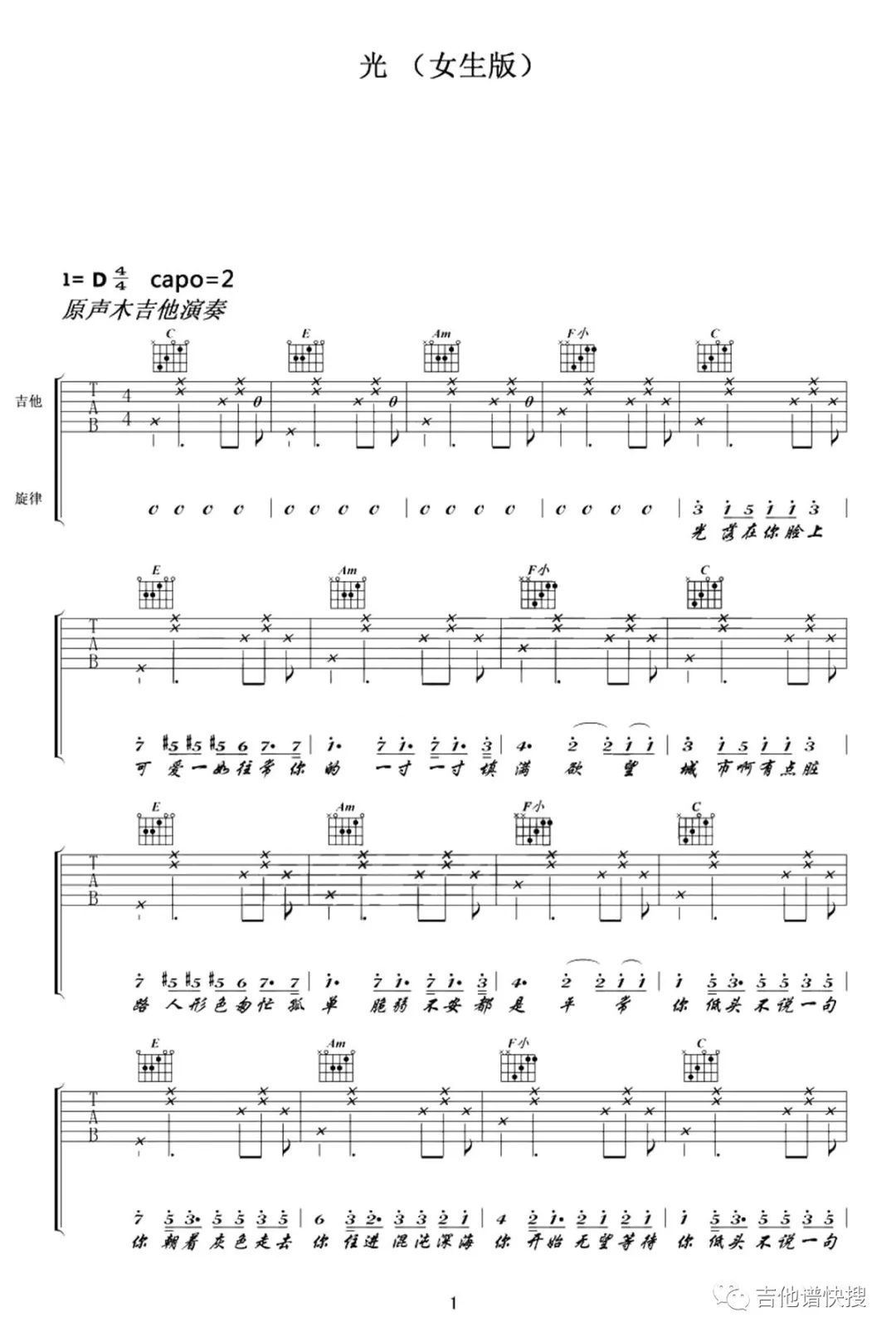 当前位置:琴谱网>吉他弹唱>光