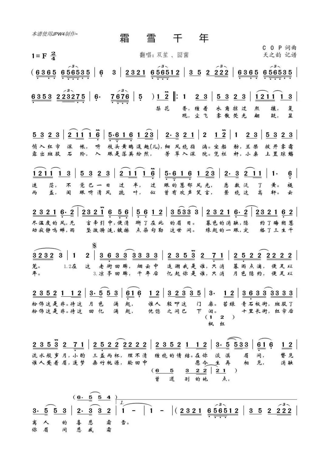 琴谱网为您精心推荐 霜雪千年 高清图谱
