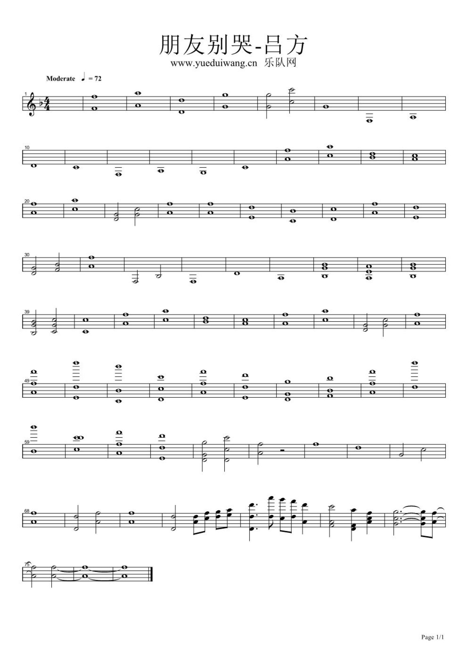 朋友别哭钢琴谱 - 吕方 - 键盘谱