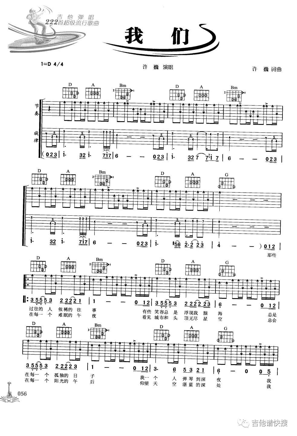 我们吉他谱 - 许巍 - D调吉他弹唱谱