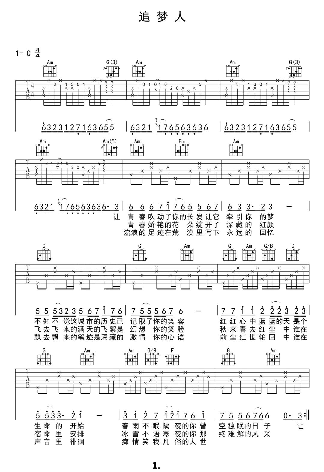 追梦人吉他谱 - 罗大佑 - C调吉他弹唱谱