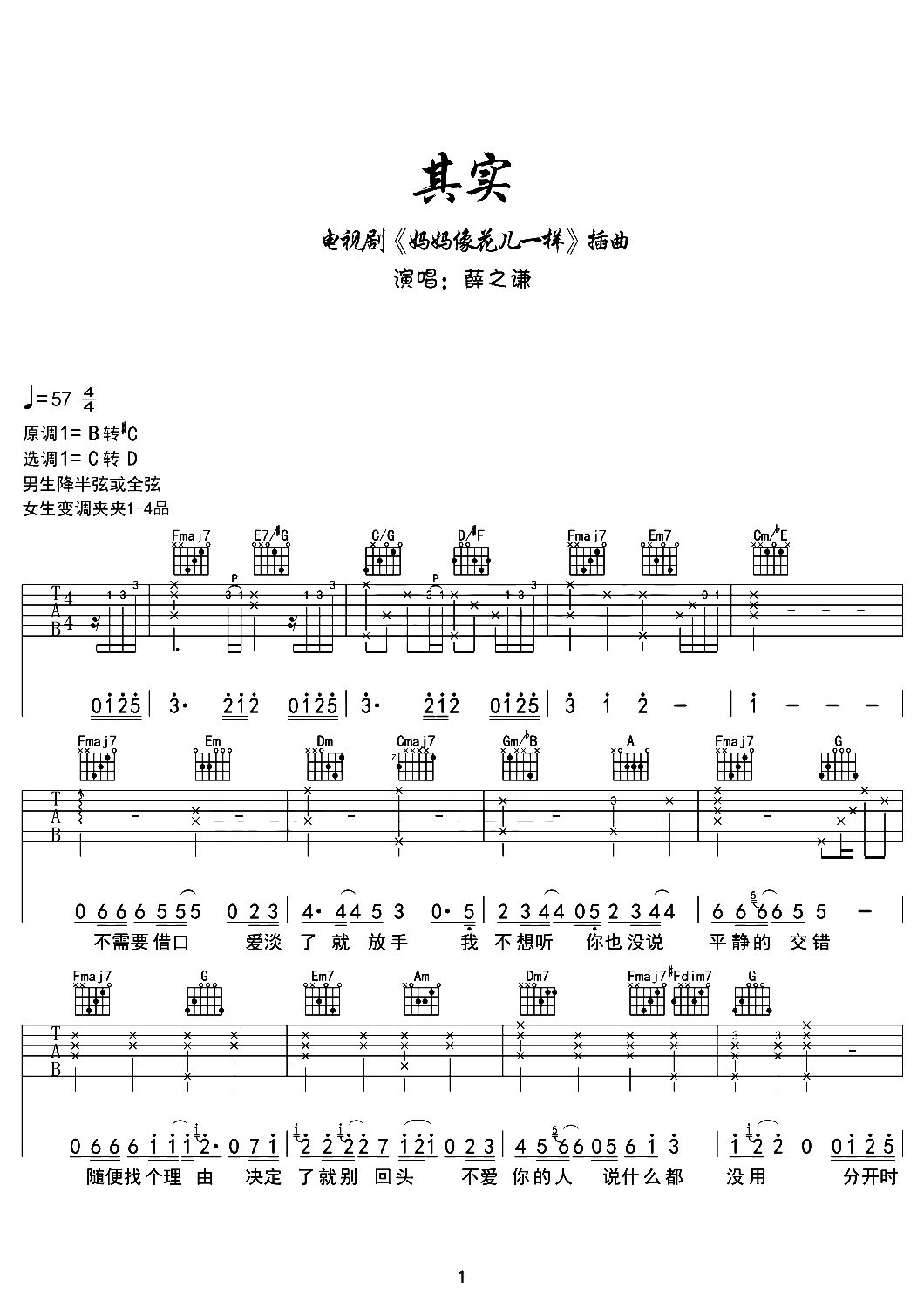 当前位置:琴谱网>吉他弹唱>其实