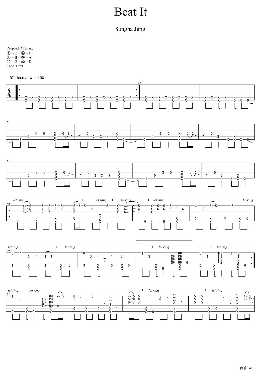 beat it吉他谱 - 吉他弹唱谱