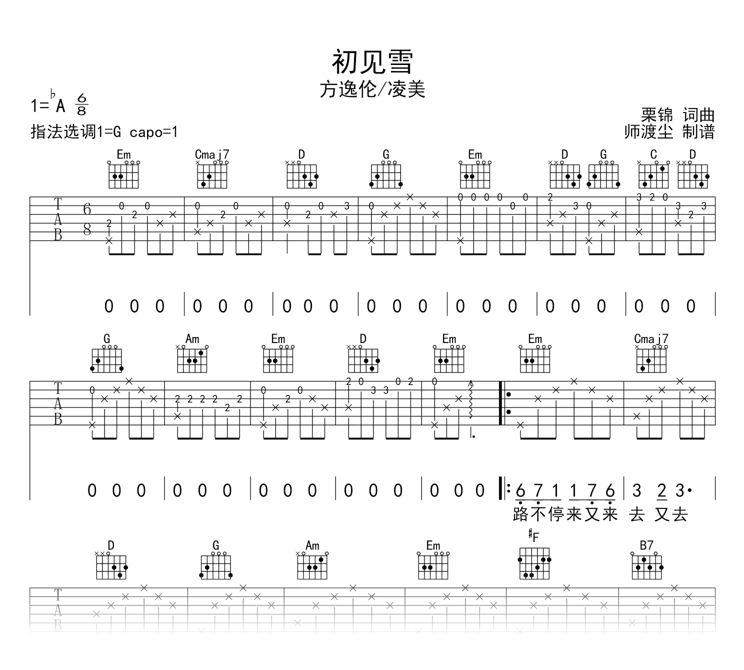初见雪吉他谱 - 方逸伦/凌美仕 - G调吉他弹唱谱