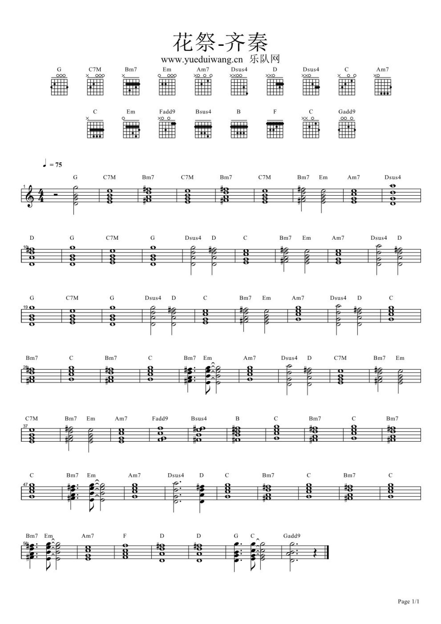 花祭钢琴谱 - 齐秦 - 键盘谱