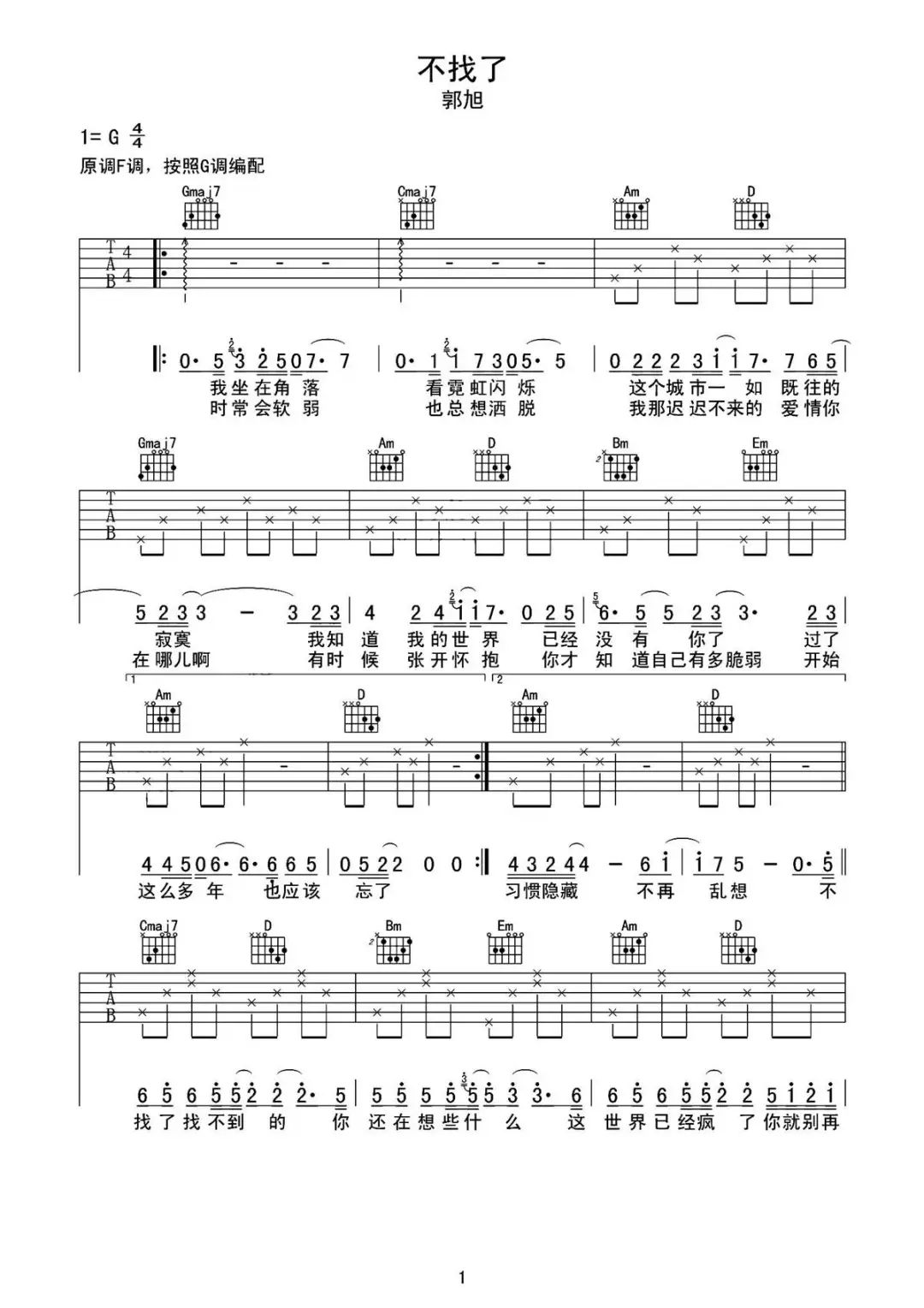 不找了吉他谱 - 郭旭 - G调吉他弹唱谱