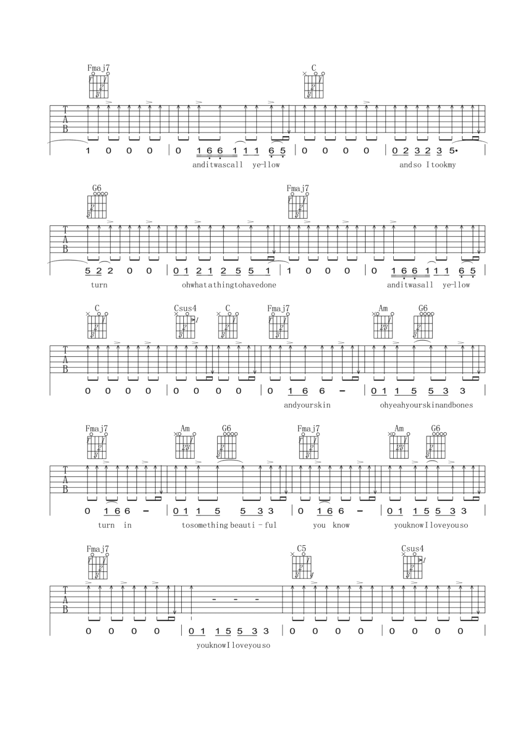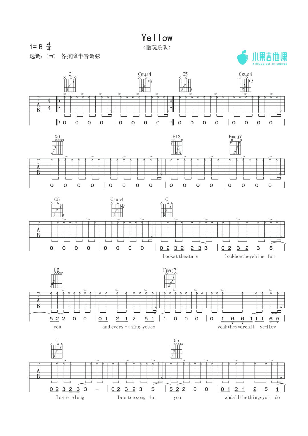当前位置:琴谱网>吉他弹唱>Yellow 酷玩乐队 C调