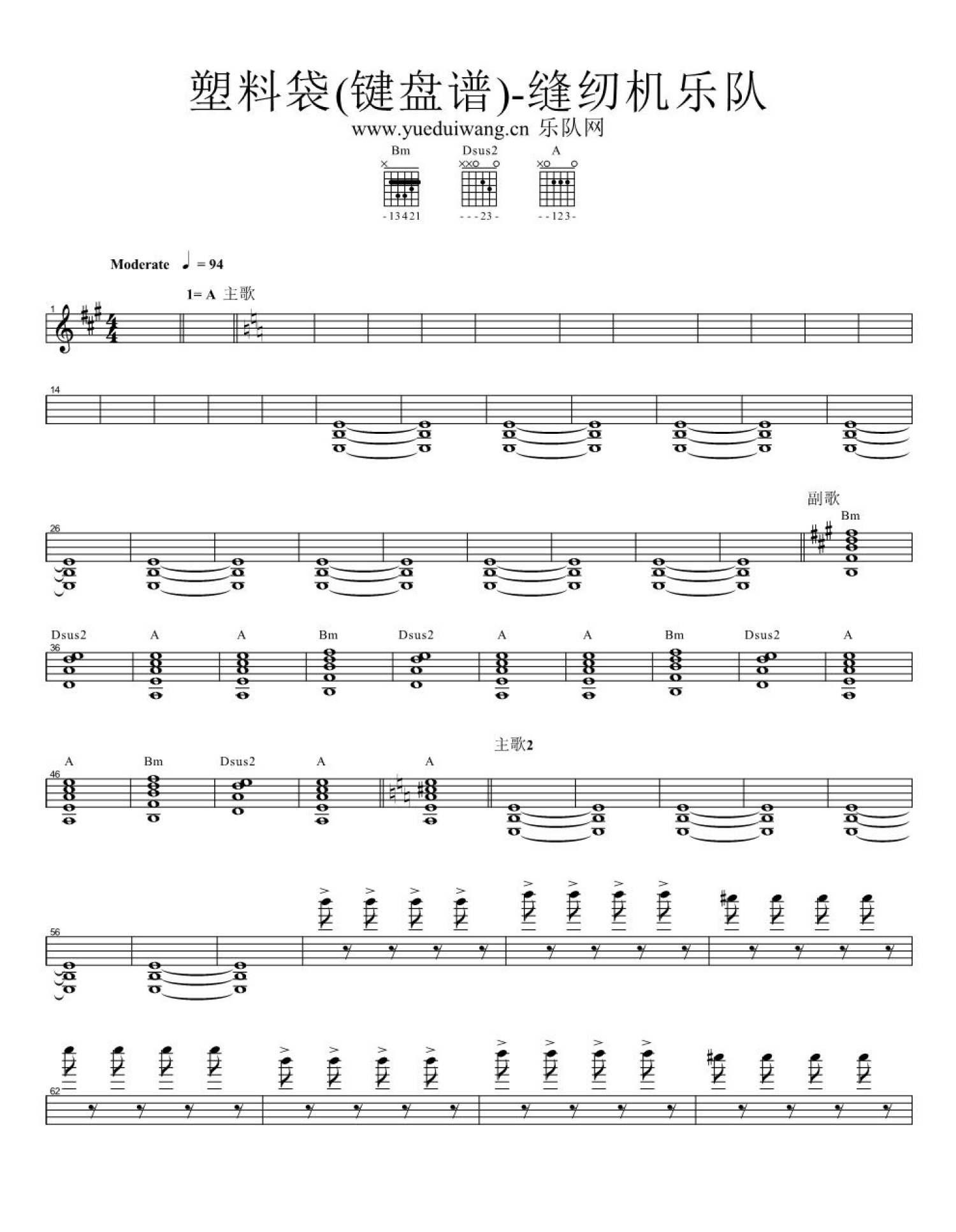 塑料袋钢琴谱 - 缝纫机乐队 - 键盘谱