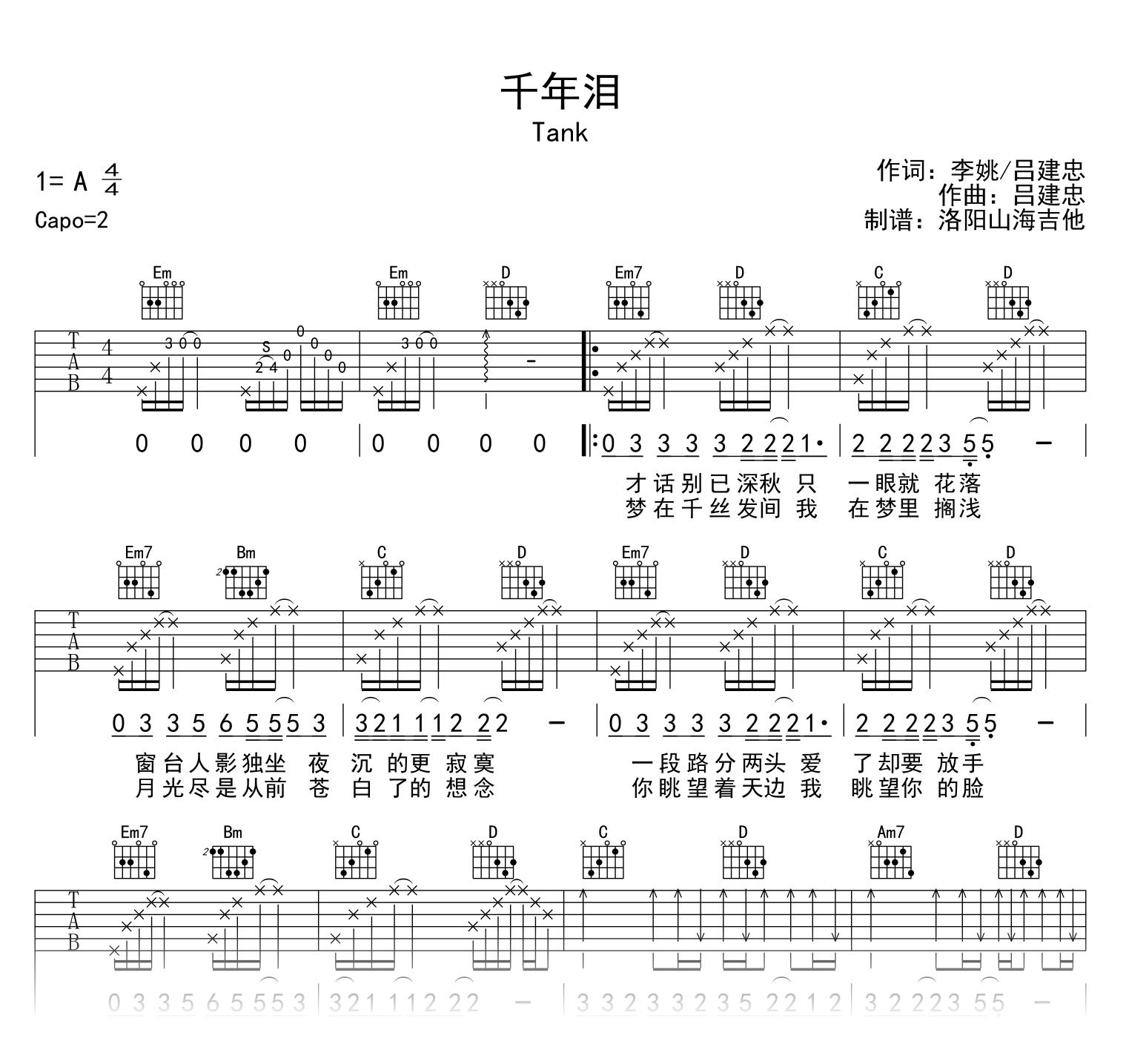 千年泪吉他谱 - TANK - 吉他弹唱谱
