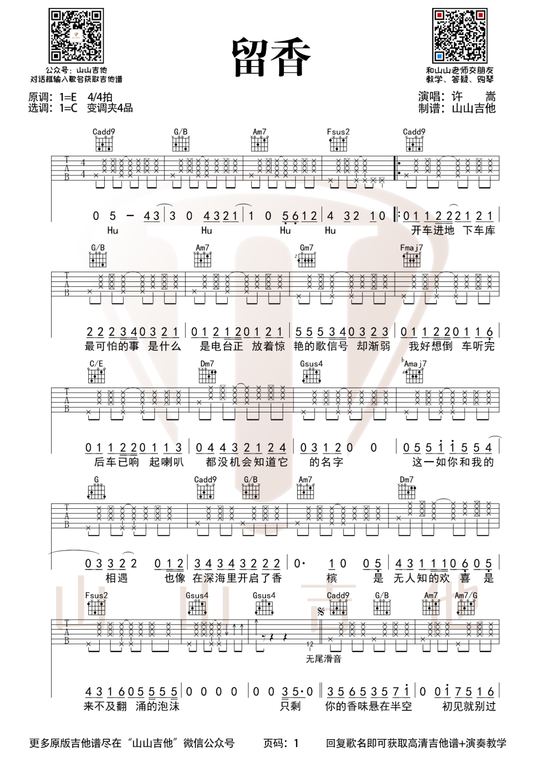 留香吉他谱 - 许嵩 - C调吉他弹唱谱
