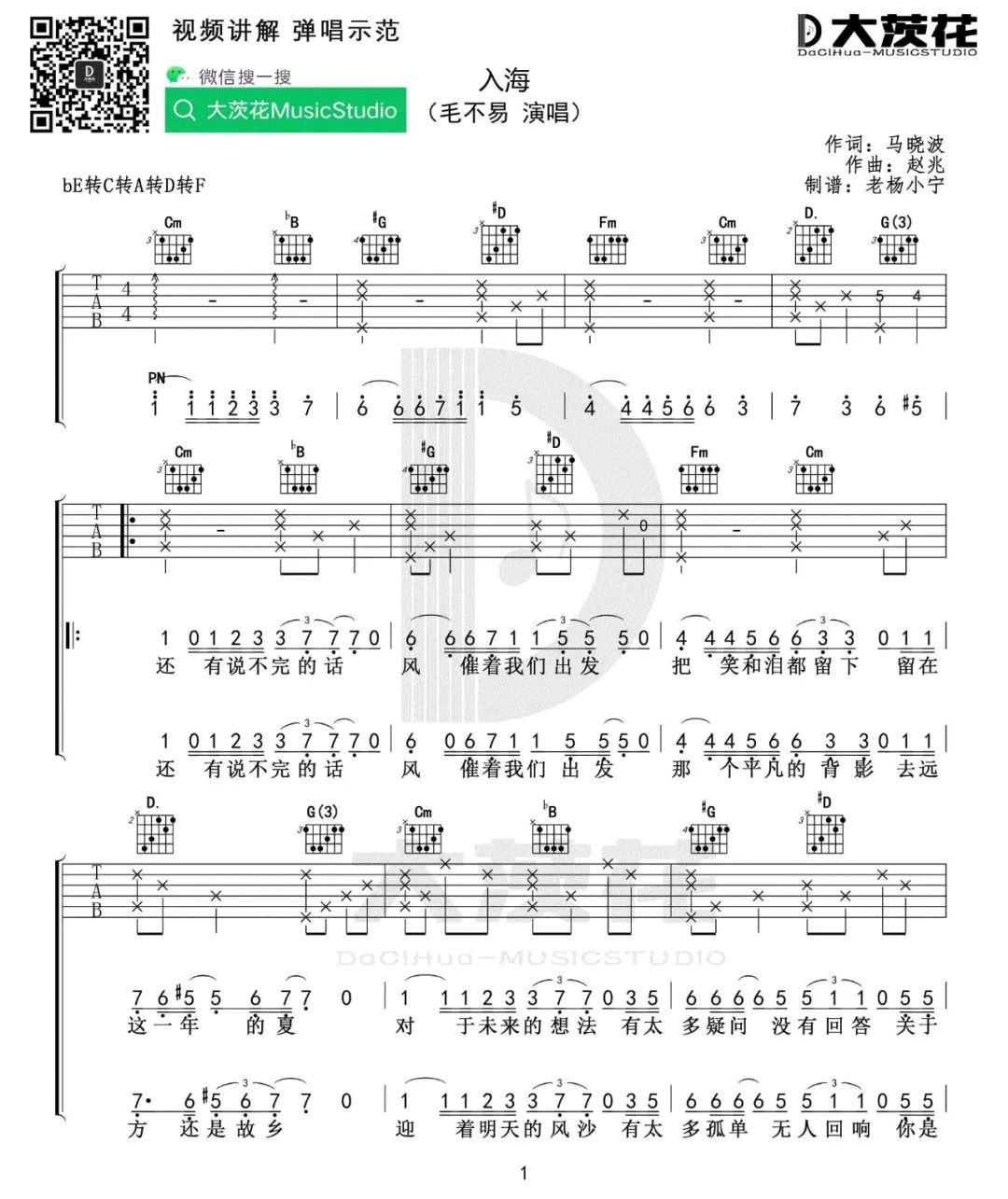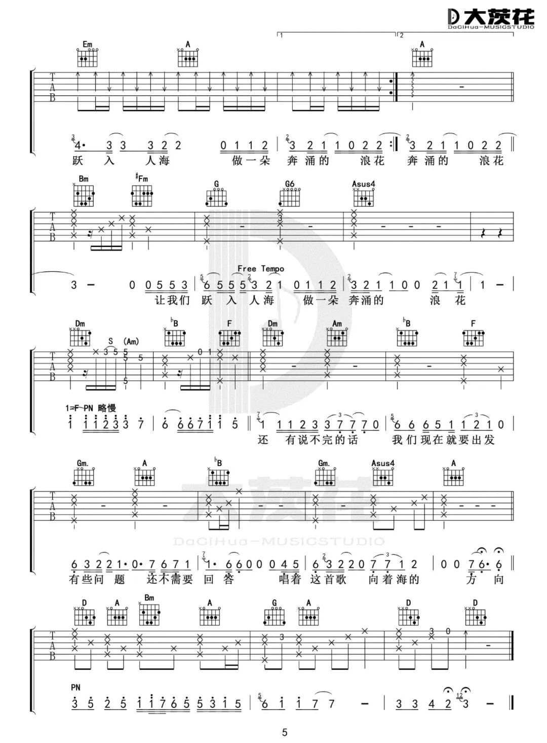 入海吉他谱 - 毛不易 - 吉他弹唱谱