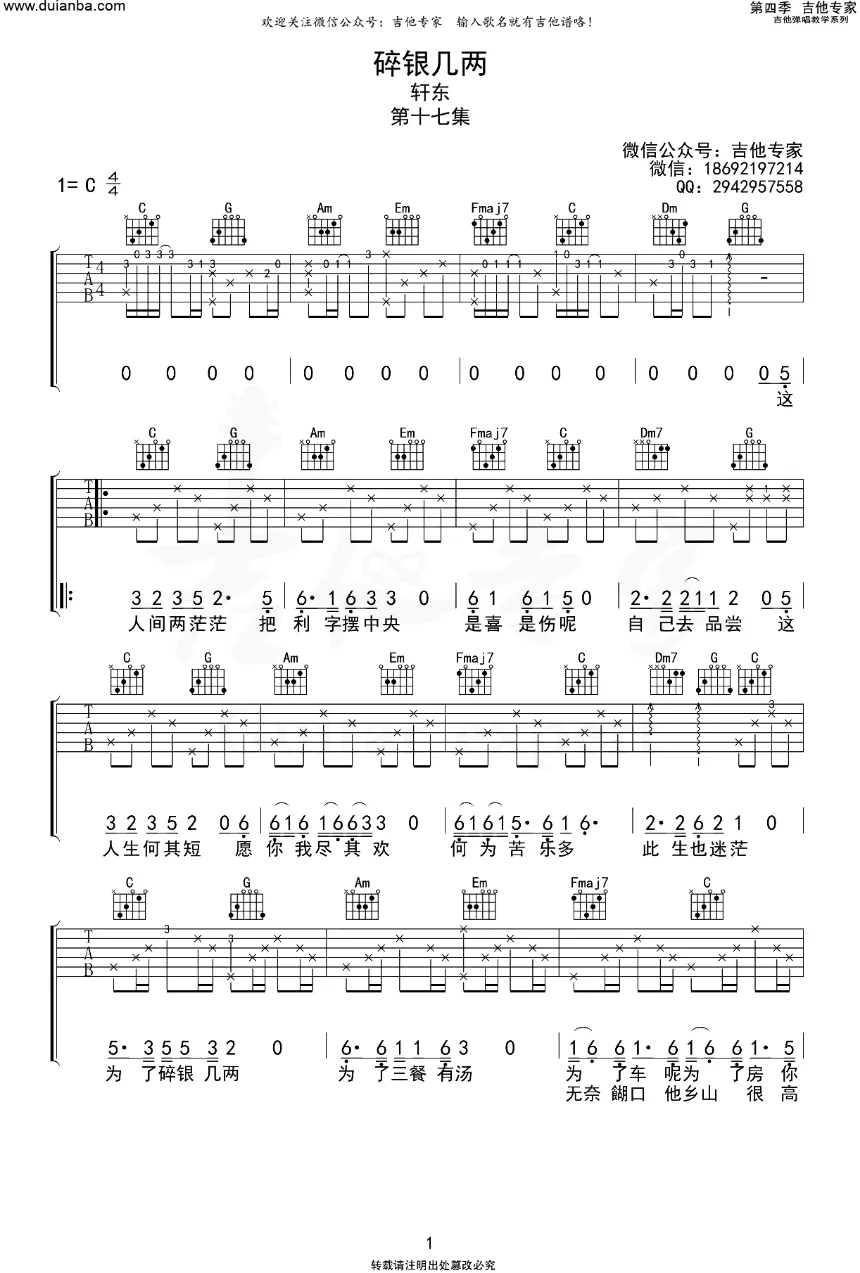 碎银几两吉他谱 - 轩东 - C调吉他弹唱谱
