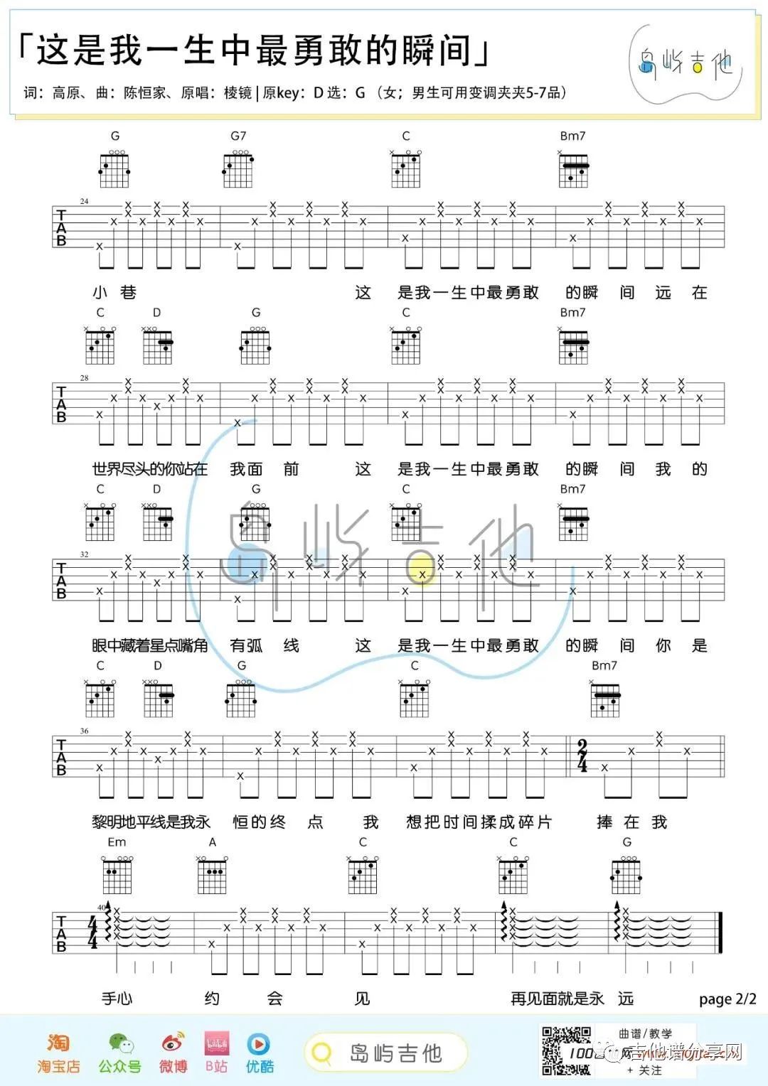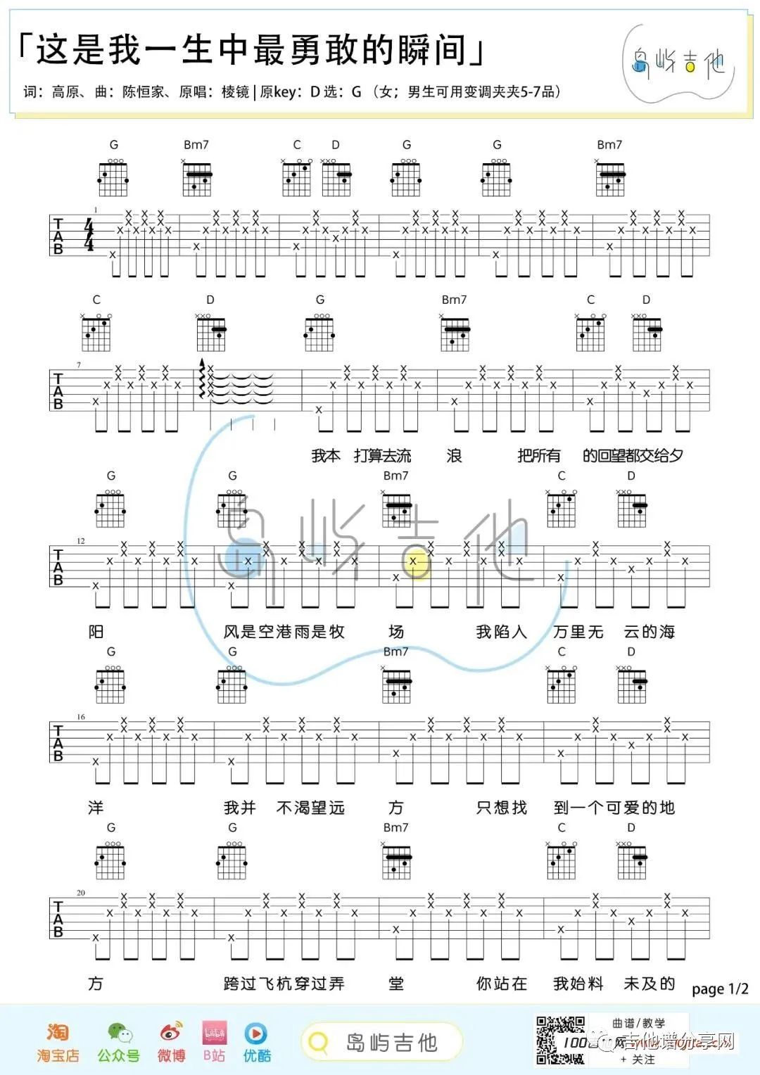 这是我一生中最勇敢的瞬间吉他谱 - 棱镜乐队 - G调吉他弹唱谱