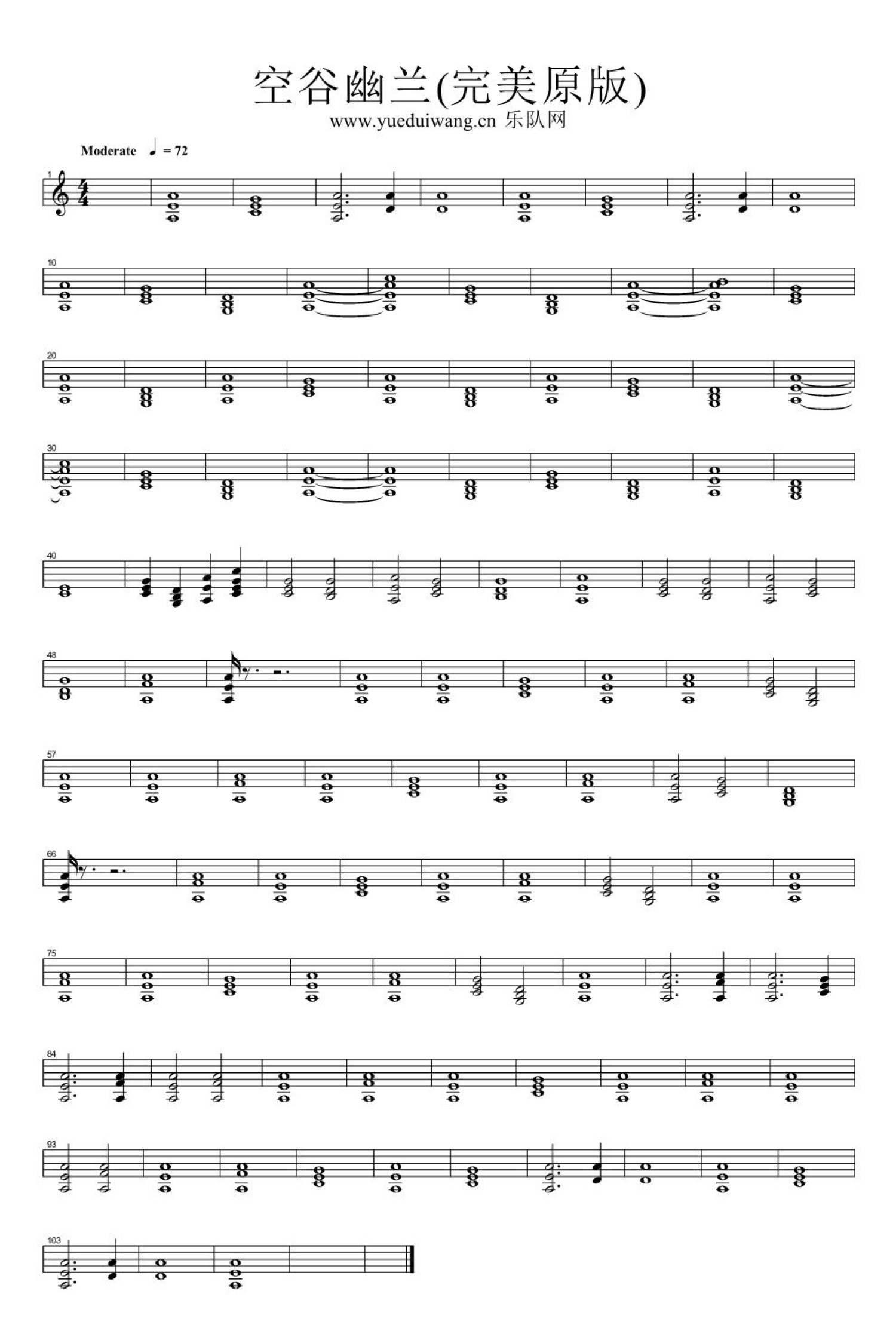 曲谱介绍: 许巍《空谷幽兰》钢琴谱_键盘谱弦乐