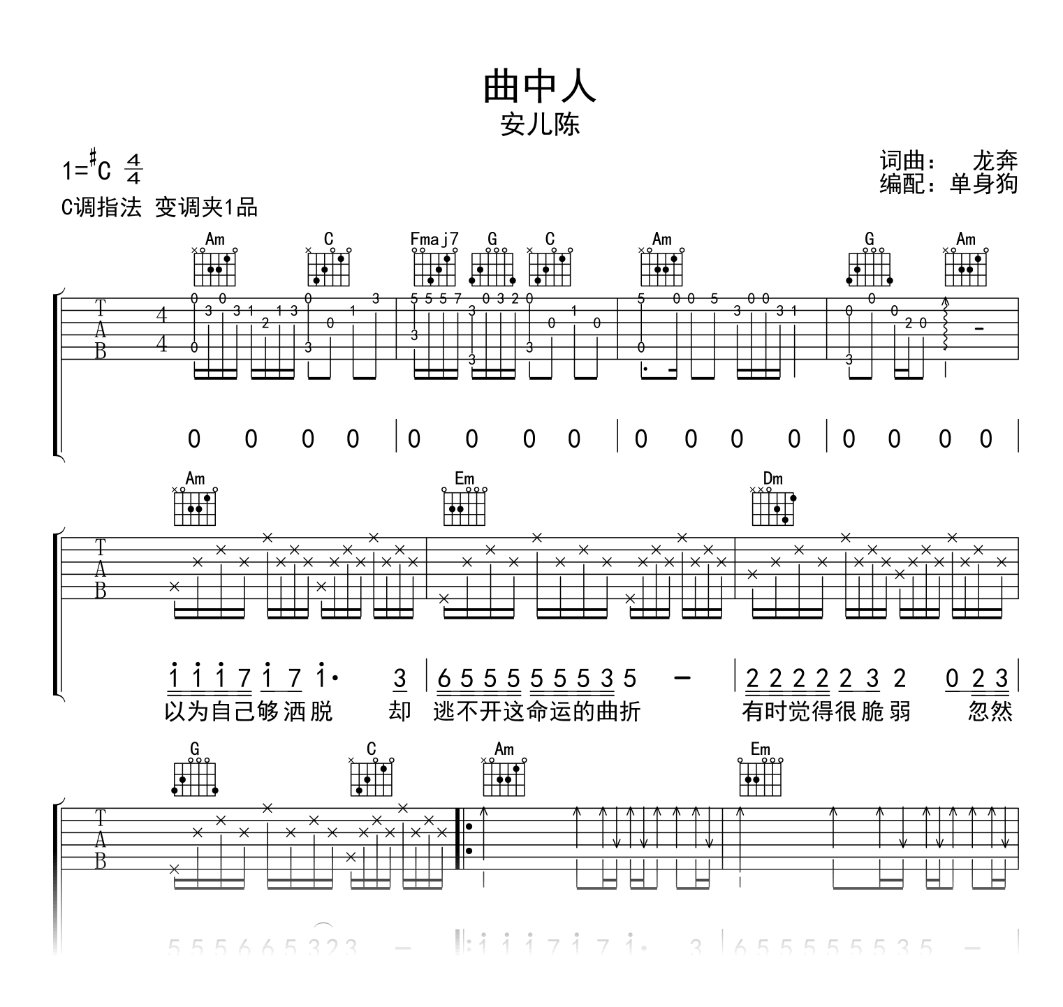 曲中人吉他谱 - 安儿陈 - C调吉他弹唱谱