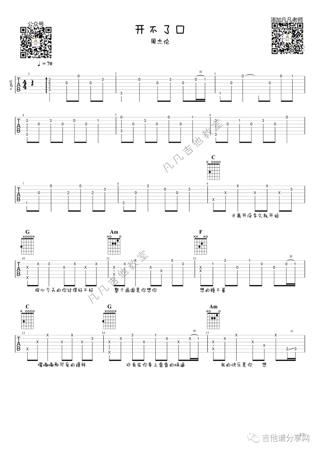 开不了口吉他谱 - 周杰伦 - 吉他弹唱谱
